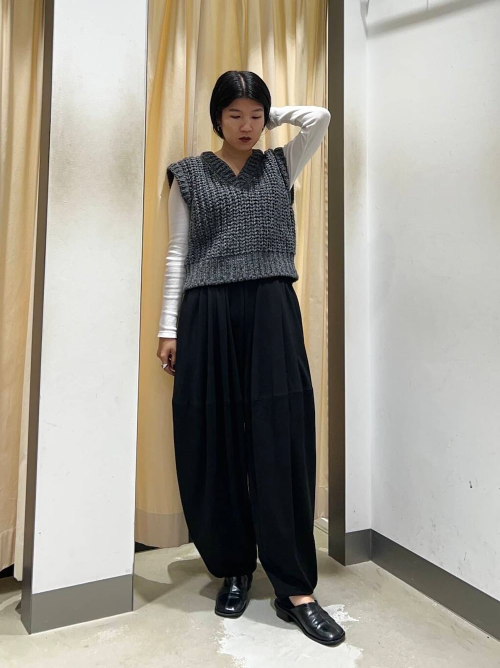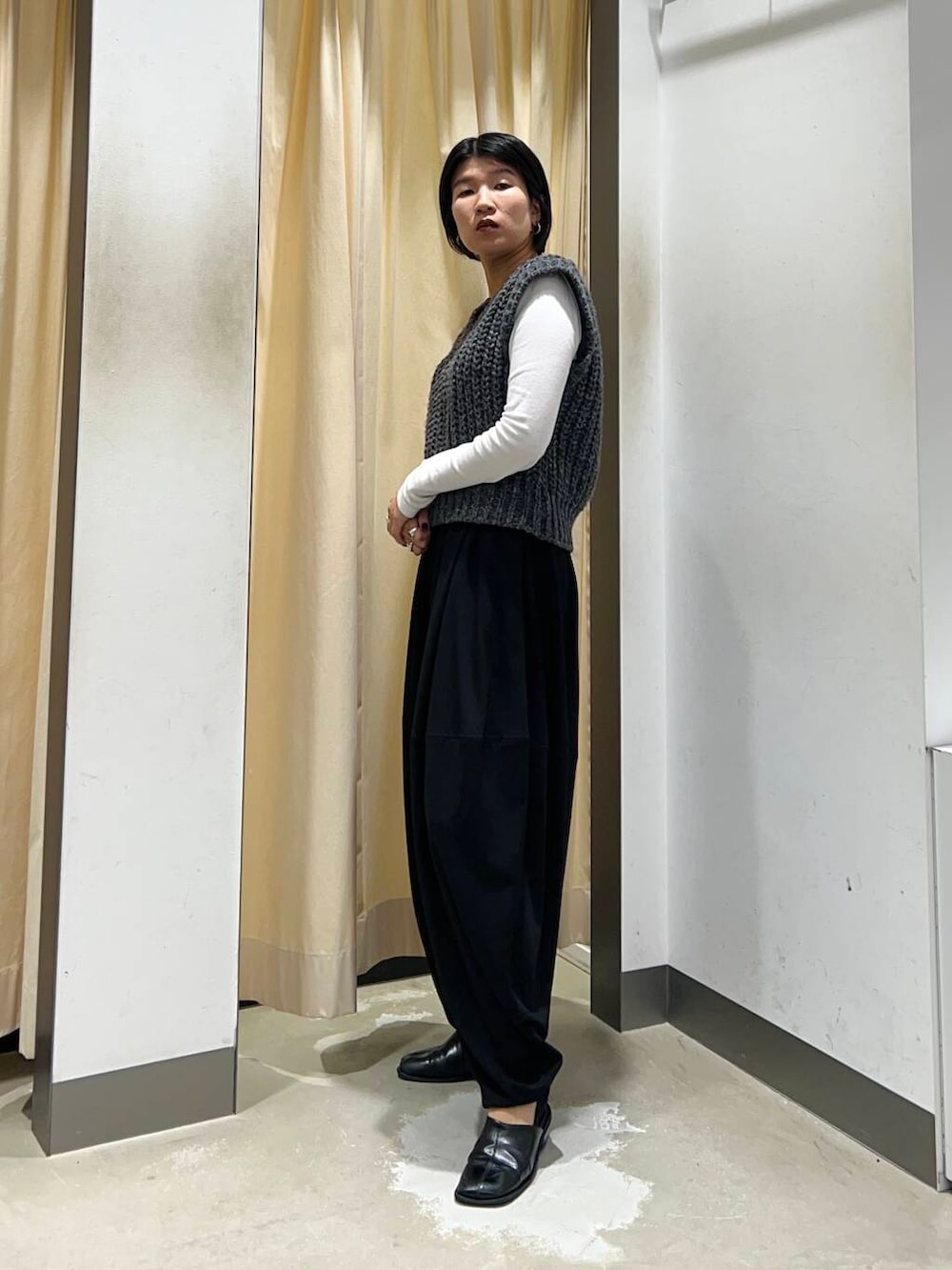 パンツはふわっとカーブのシルエットが珍しいデザイン!
