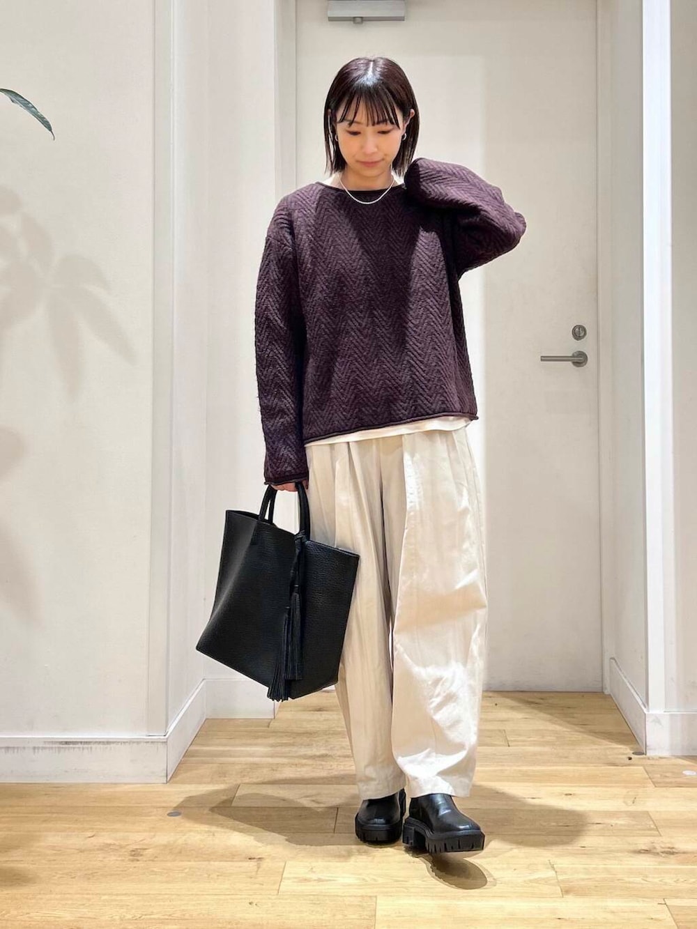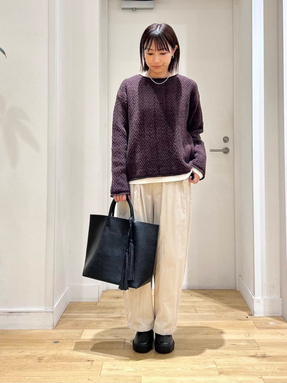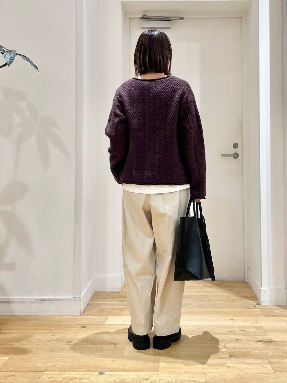 ヘリンボーンのような編み柄が特徴のニットは、シンプルながらも1枚で様になるアイテムです!