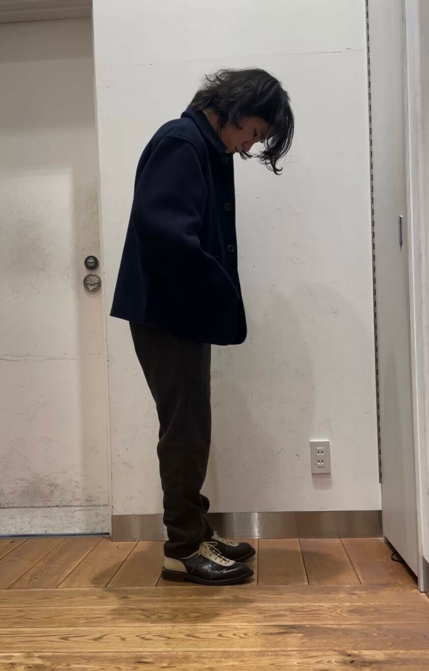 DANTONのCOVERALLS JACKETとGRAMICCI別注ナチュラルウールブランドトラウザーを使った冬コーデです。