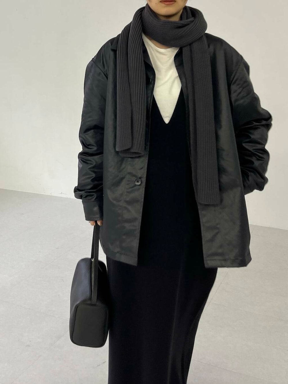 ジャケット:ゆったりしているので、中にニットやフーディーも着込めます。