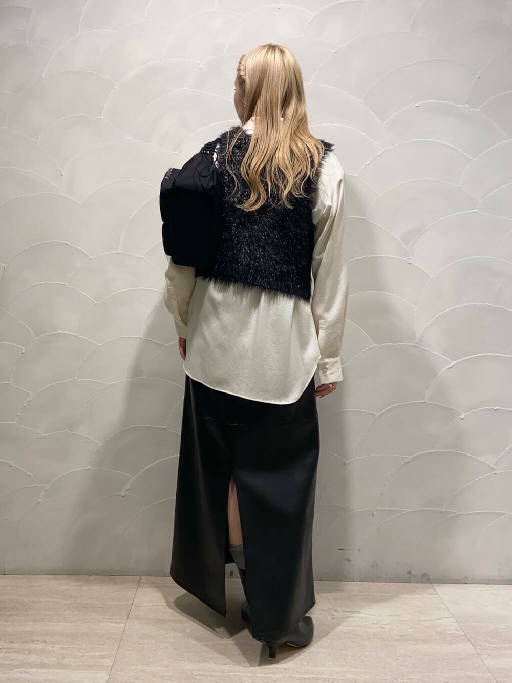 トップスのシャギーニットベストは丈短めなのであえてシャツを出してバランス取ってます!
