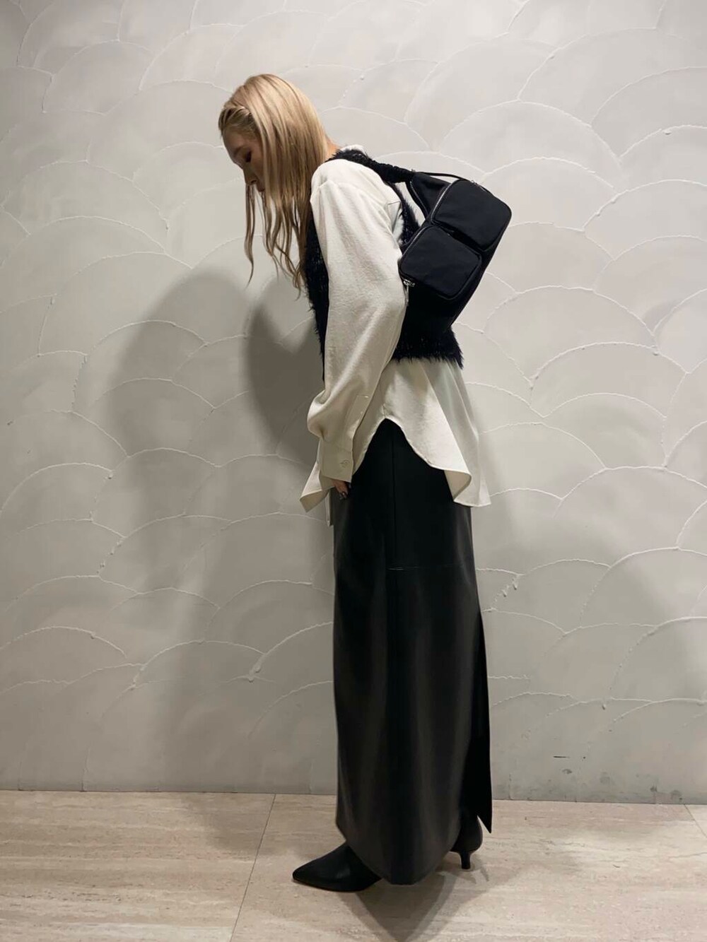 レザースカートは丈長めなので、高身長さんや、ブーツ合わせにもぴったりです^^