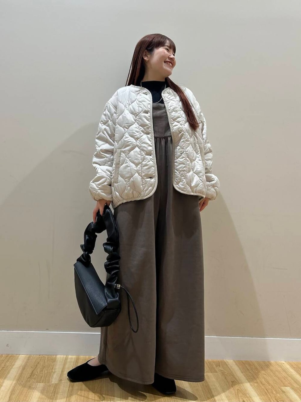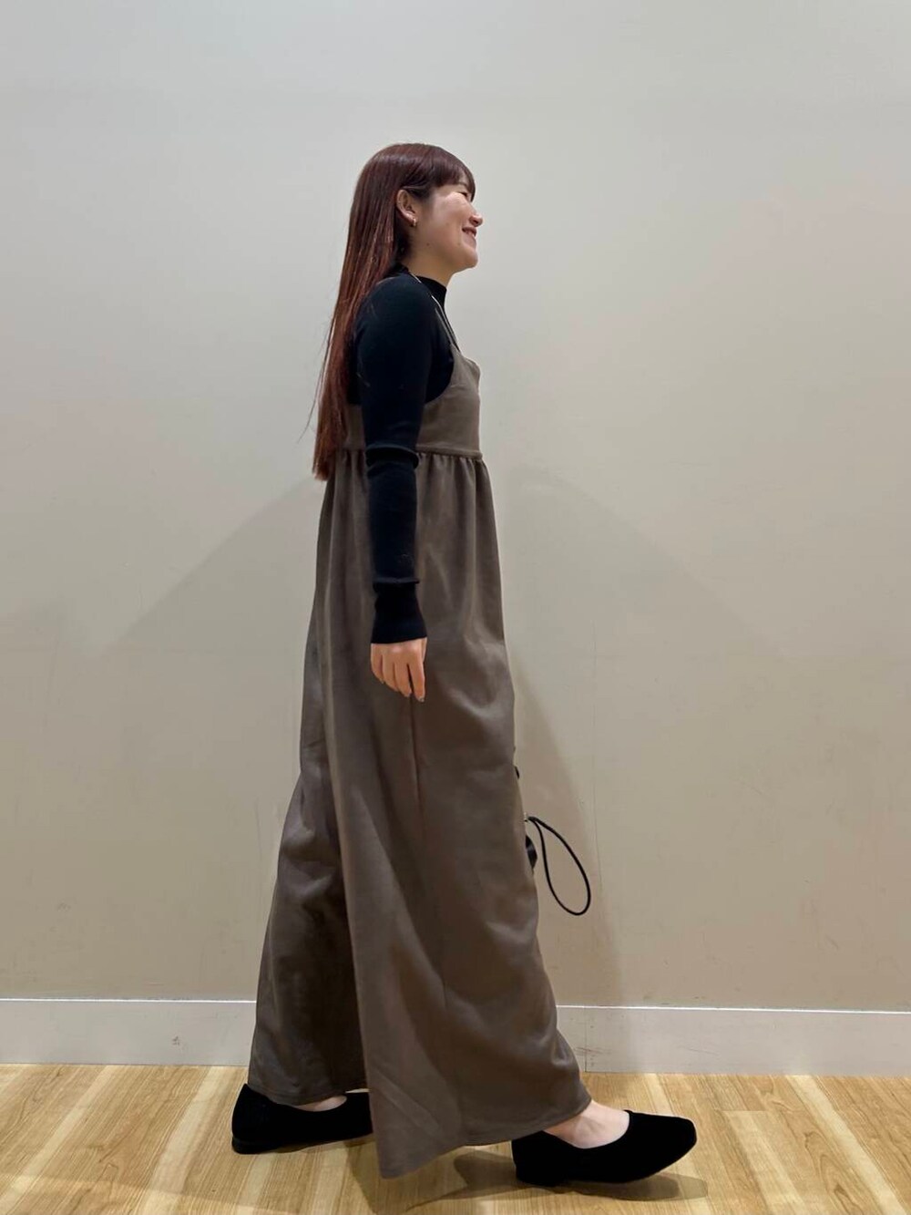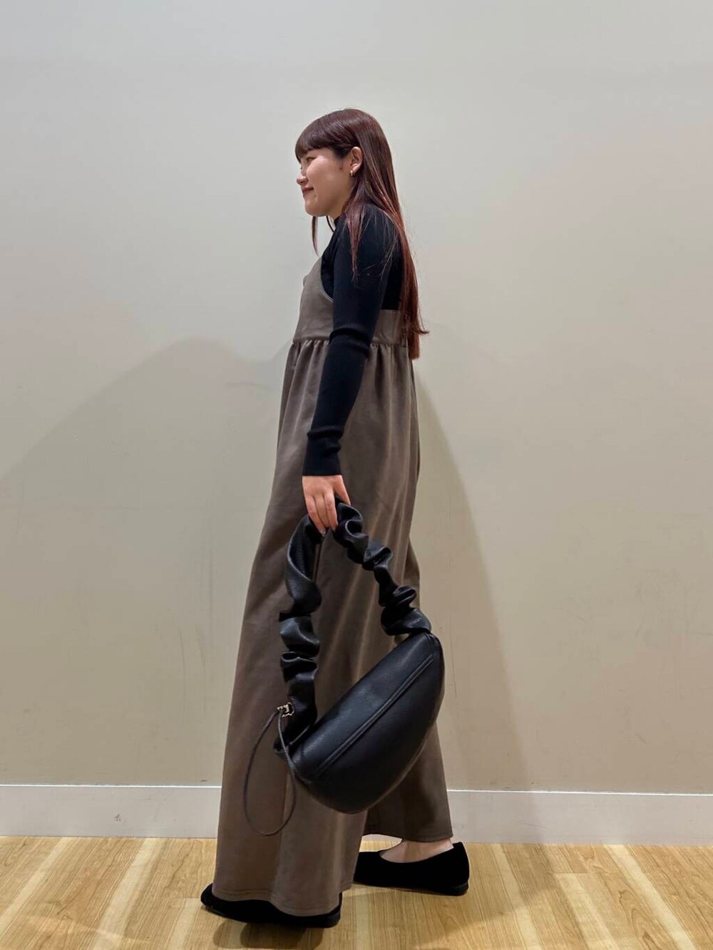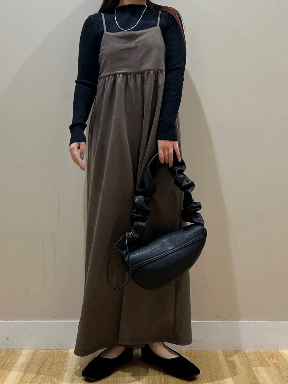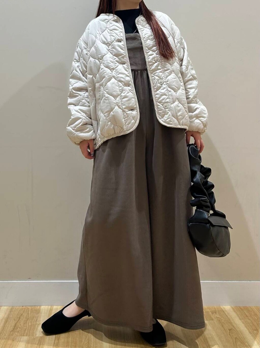 リブニットセットのワイドサロペットはベロア生地で高見えするアイテムです🥰🥰