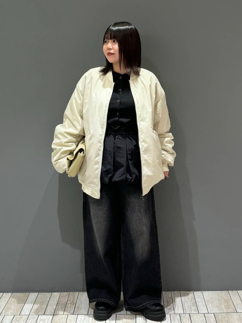 メンズライクなMA-1に女性らしさをプラスした丸山礼さんコラボアイテムです💖袖にたっぷりと施されたギャザーと全体的に丸みのあるシルエットが可愛すぎます...!!!丈感はおしりまで隠れる長さ&オーバーサイズな作りで中に着るトップスを選ばずに着ていただけます👍🏻