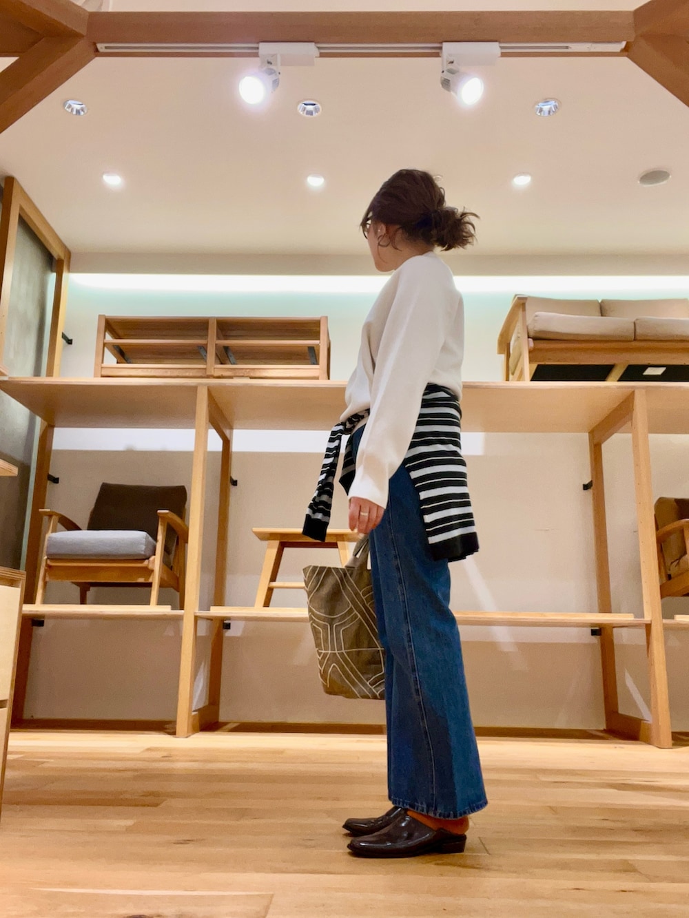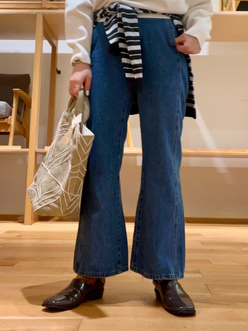 フレアデニムはシルエットがスッキリとしていて綺麗で丈が絶妙でソックス・シューズと映えます‼︎