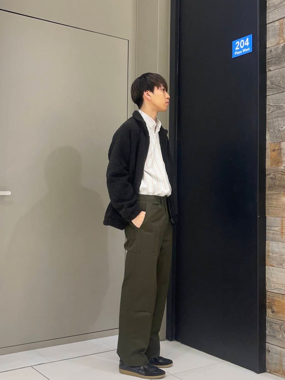 きょうは綺麗めなチノパンツとシャツをボアジャケットでカジュアルにまとめたコーディネートになっております。