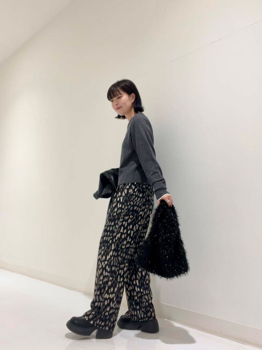 バッグも素材でメリハリをつけました!ラメはワンポイントにおすすめです◎