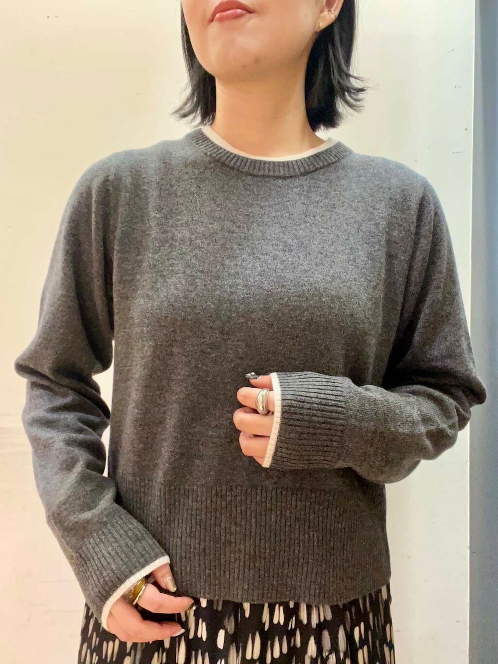 バイカラーコンパクトニットは丈短めで、襟と袖のバイカラーがポイントとなっており、シンプルですが洒落感を演出します◎