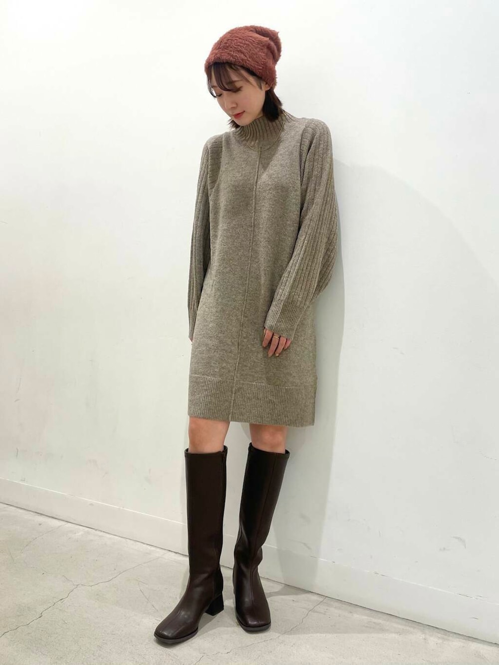 ニットワンピースはゆったりシルエットで体のラインを拾わないのが嬉しいですよね♪