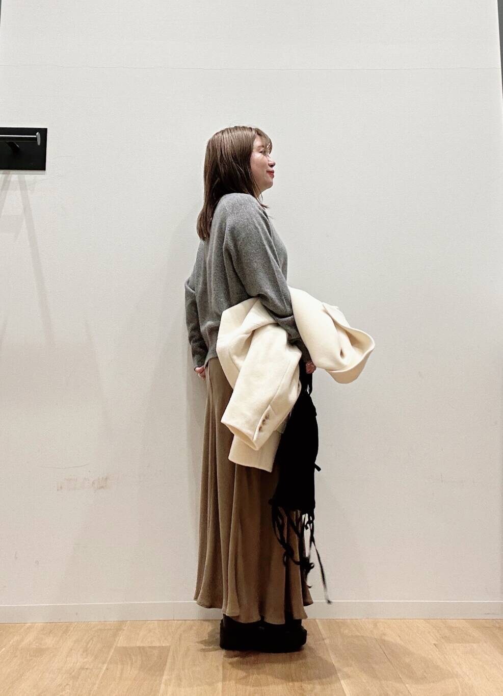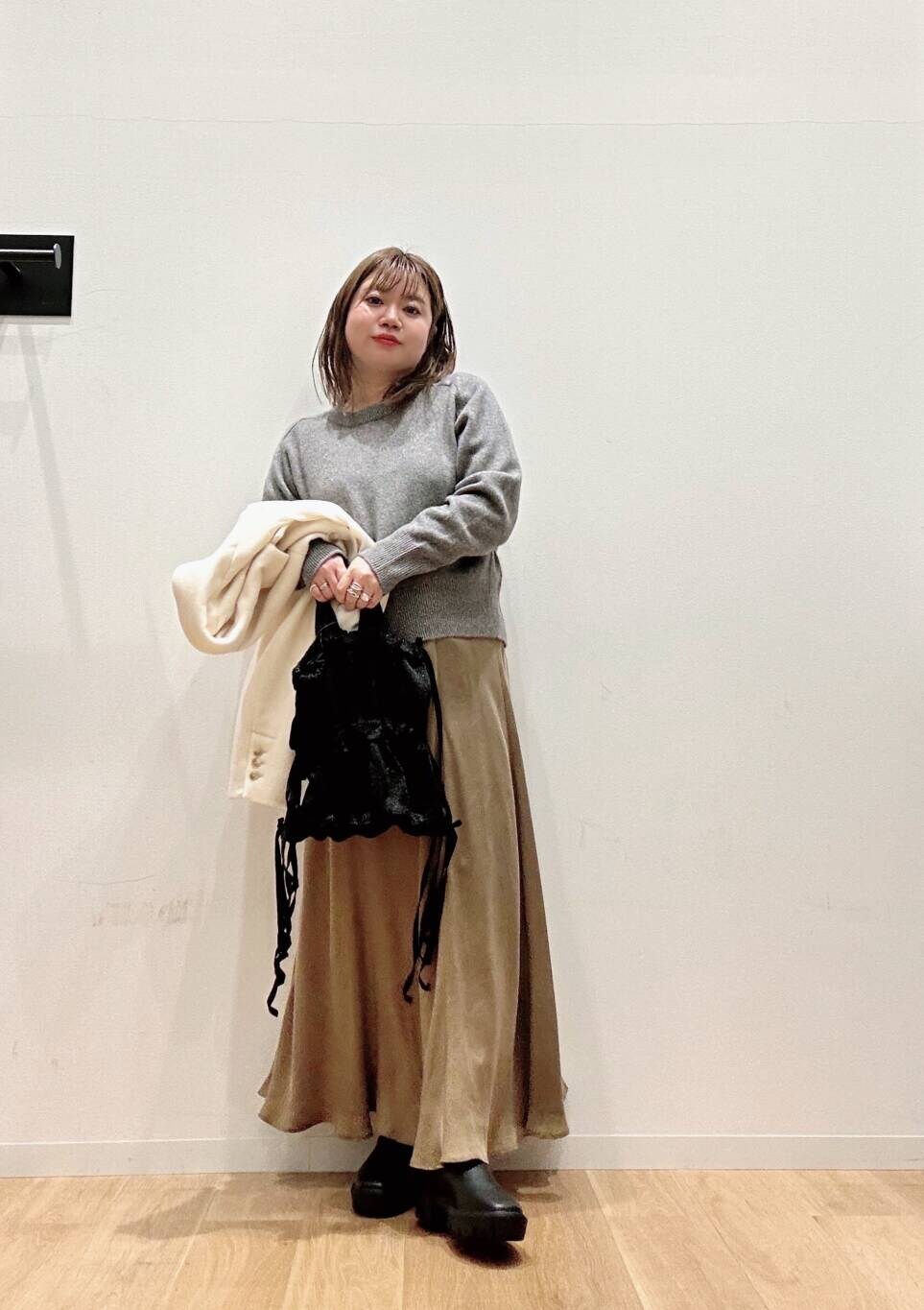 インナーの🧶はラメが上品で着膨れせずにサラッと着こなせます🔷🔶