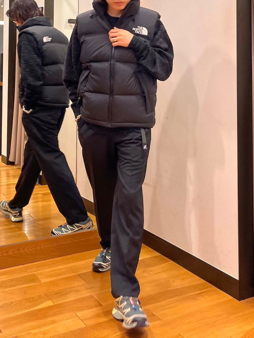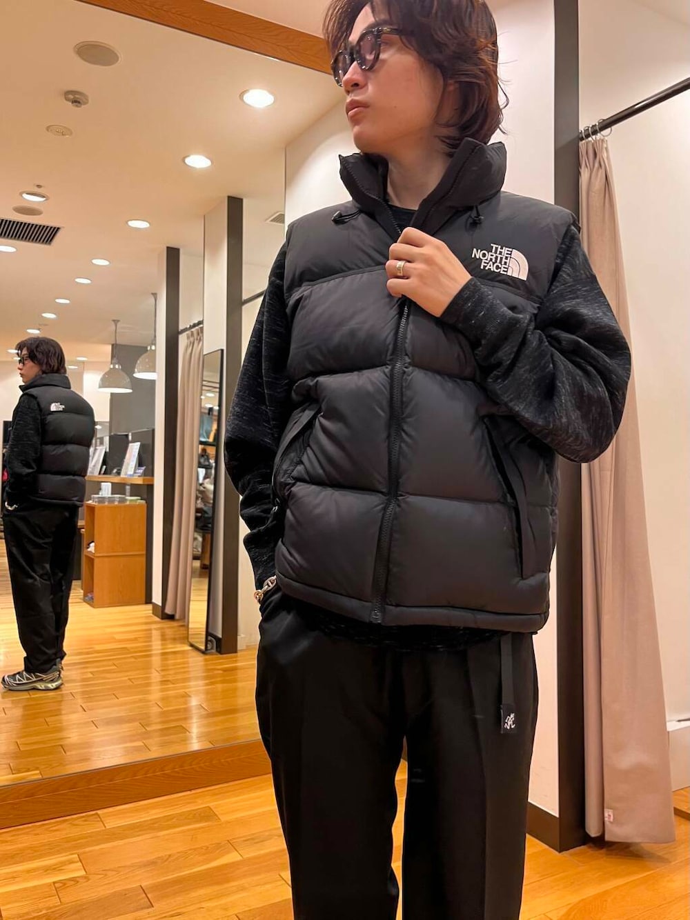 なんせ中着込めば(厚手のニットとか?)ベスト羽織れば楽チンですし、、安心のノースフェイスのヌプシってところも良い。