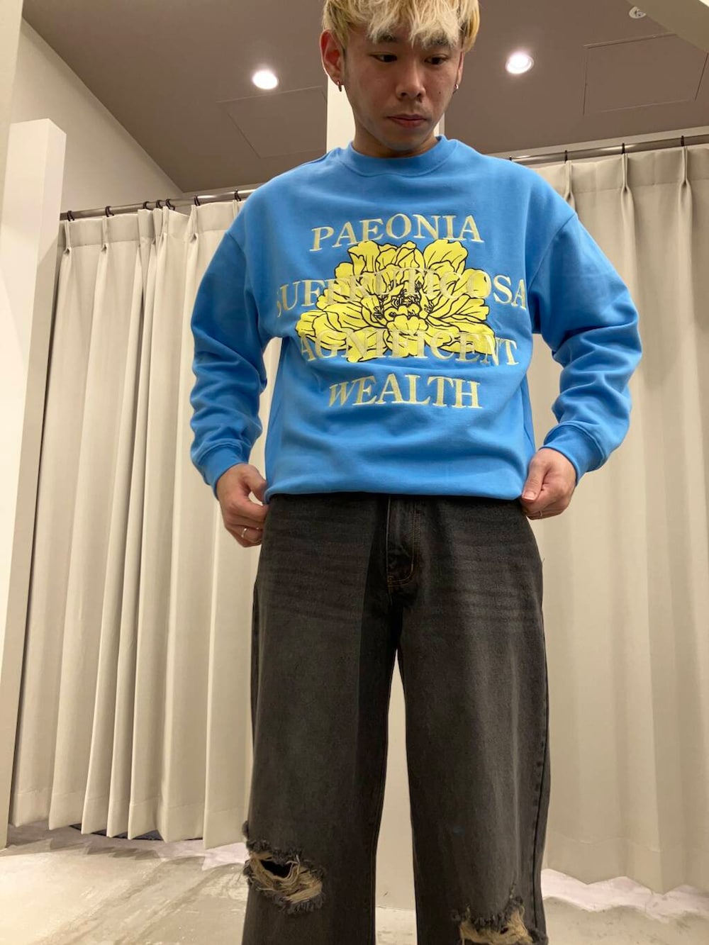 鮮やかなグラフィックが印象的なスウェットは、少し小さめサイズで女性でも大きすぎないサイズ感です!