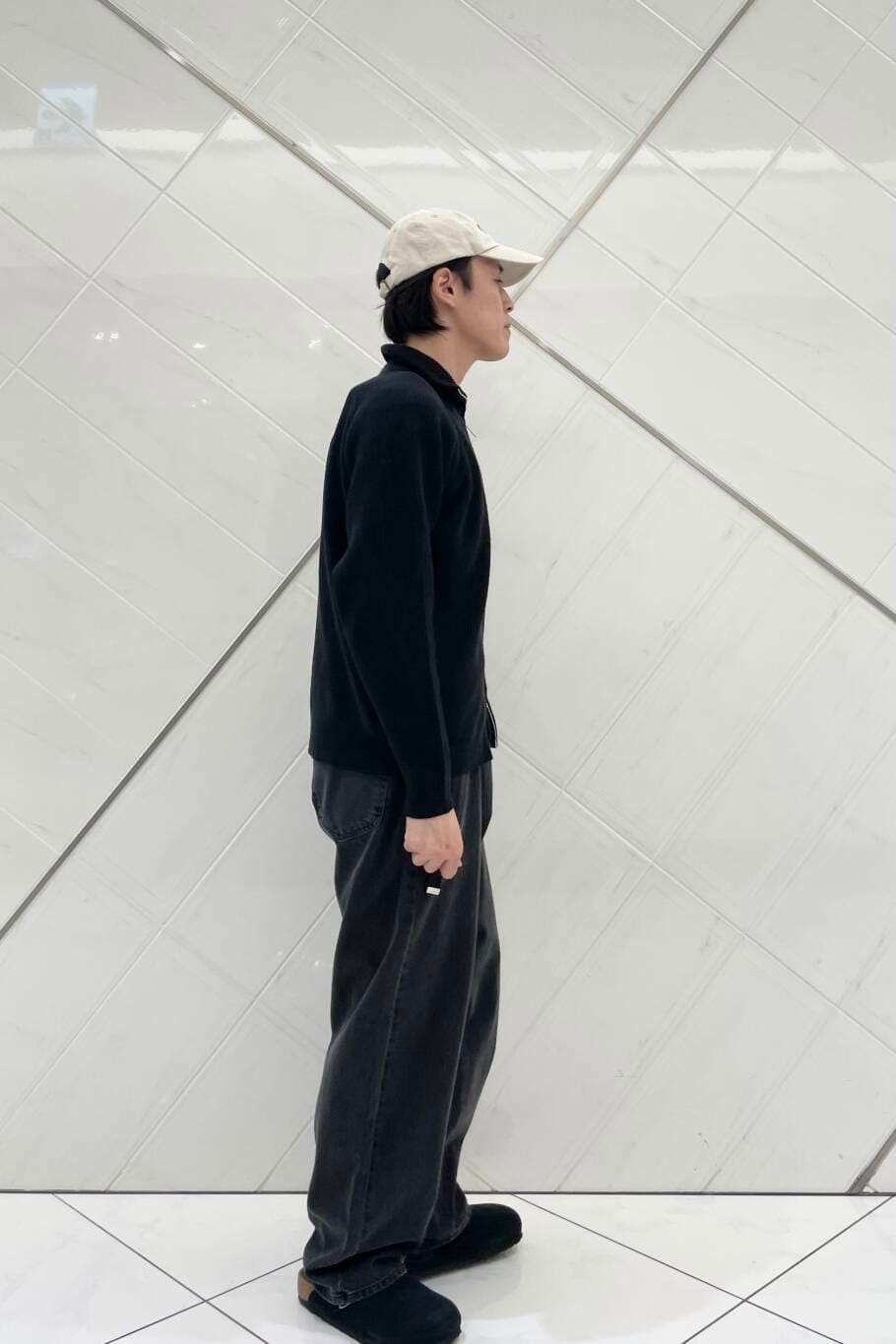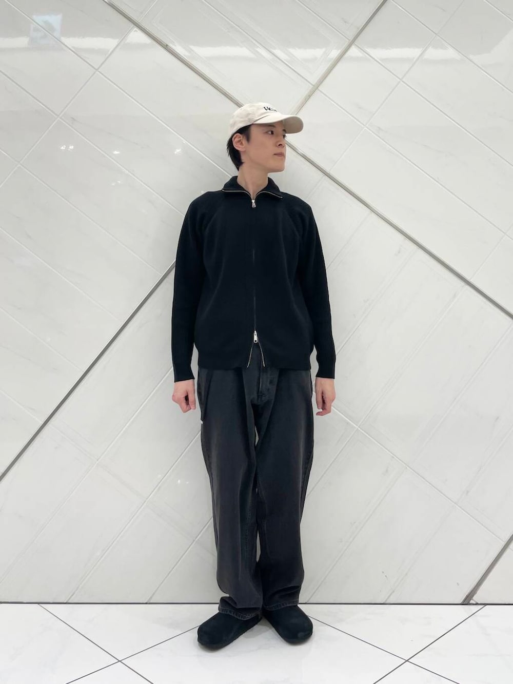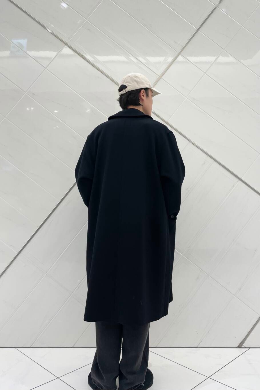 コート以外のアイテムをカジュアルアイテムで統一する事で、決まりすぎないスタイリングにしました。