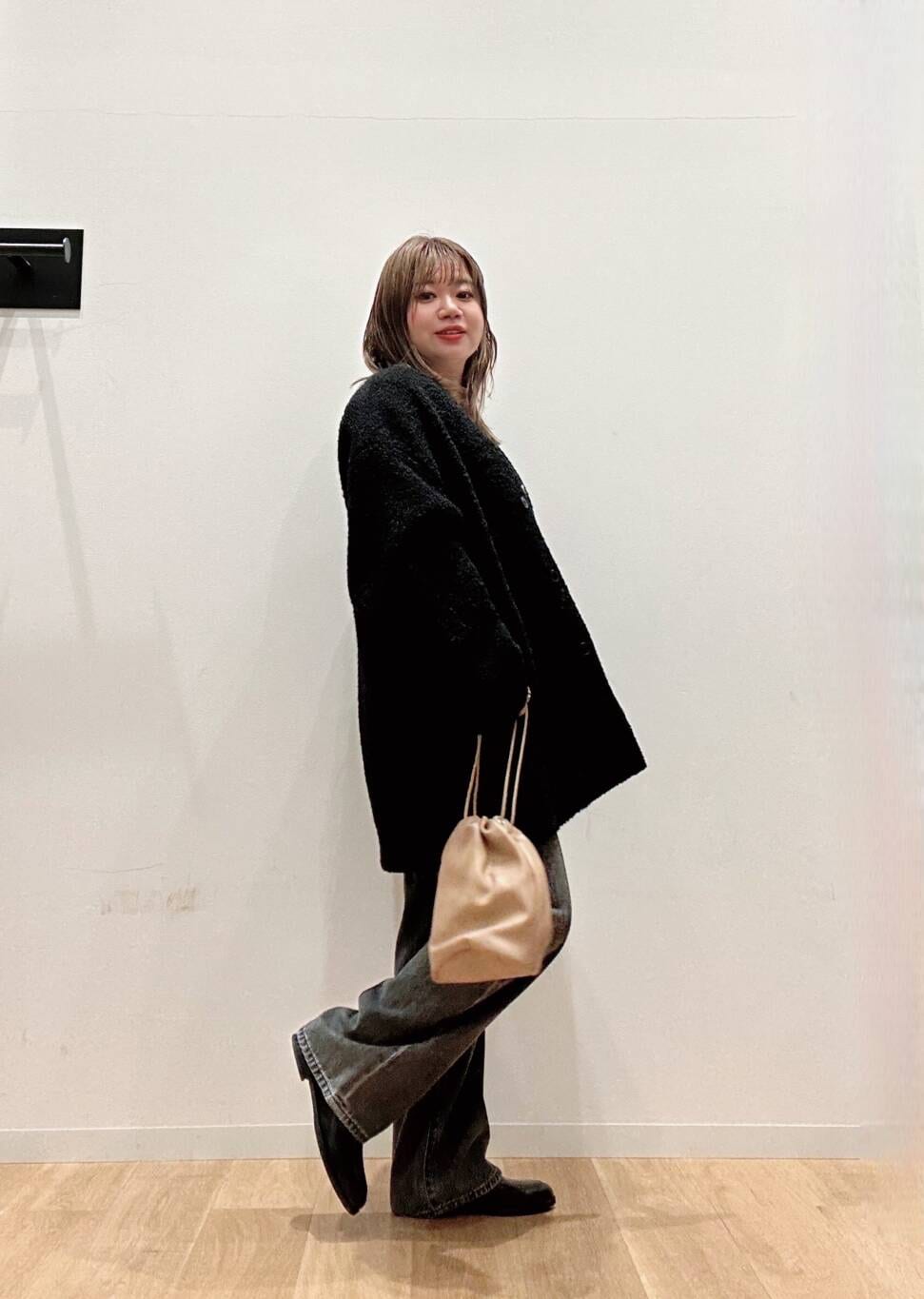 ノーカラーなので首元はスッキリみえ、タートルやストールとの相性も◎🙆♀️