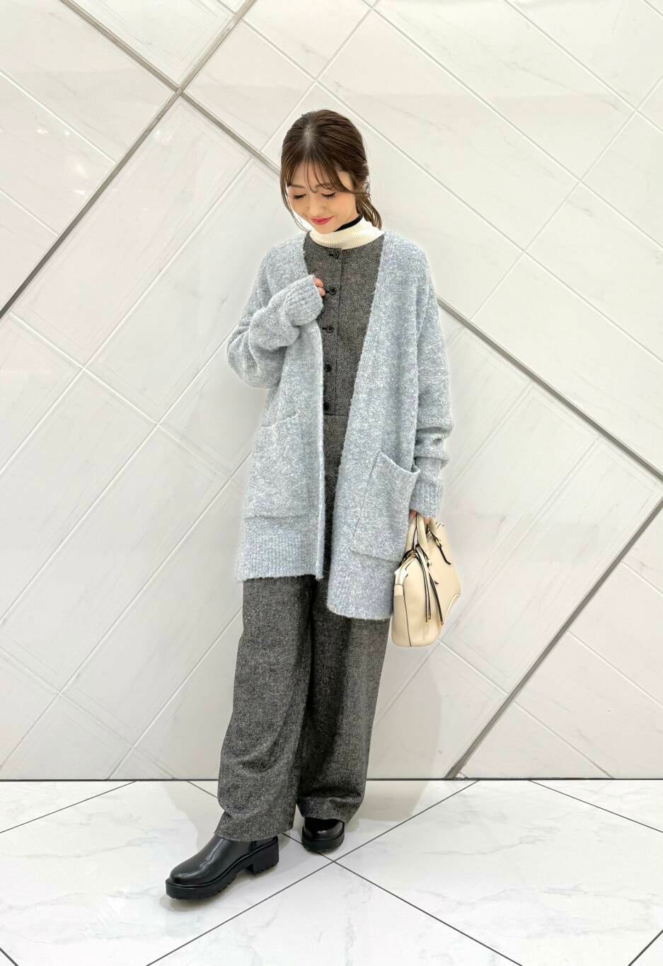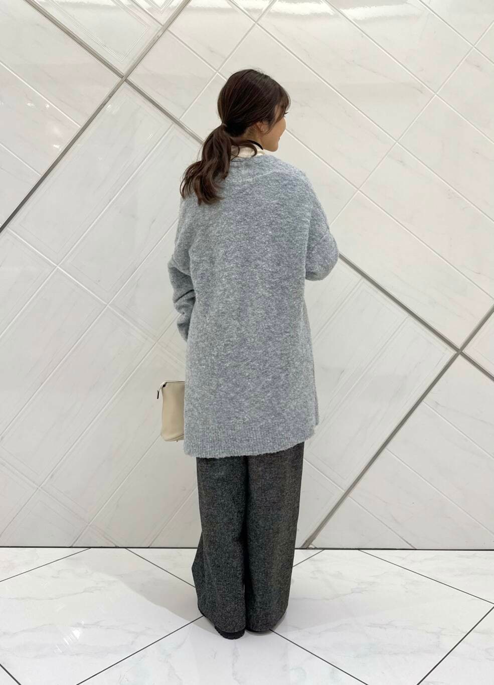 カーディガンはボタンがないすっきりとしたデザインで着回ししやすいアイテムです。