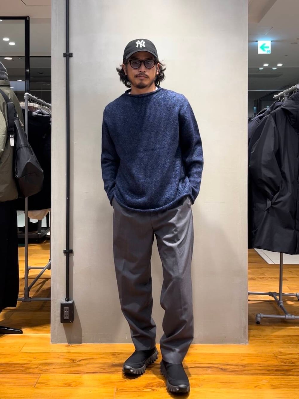 ロールネックニットはデニムカラーでコーディネートしやすく便利です