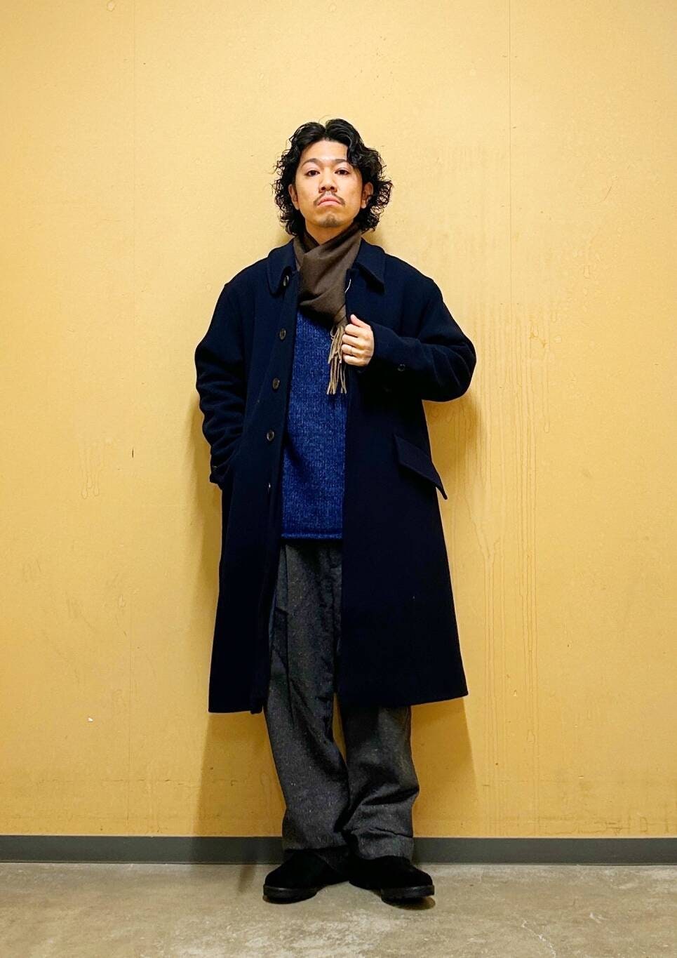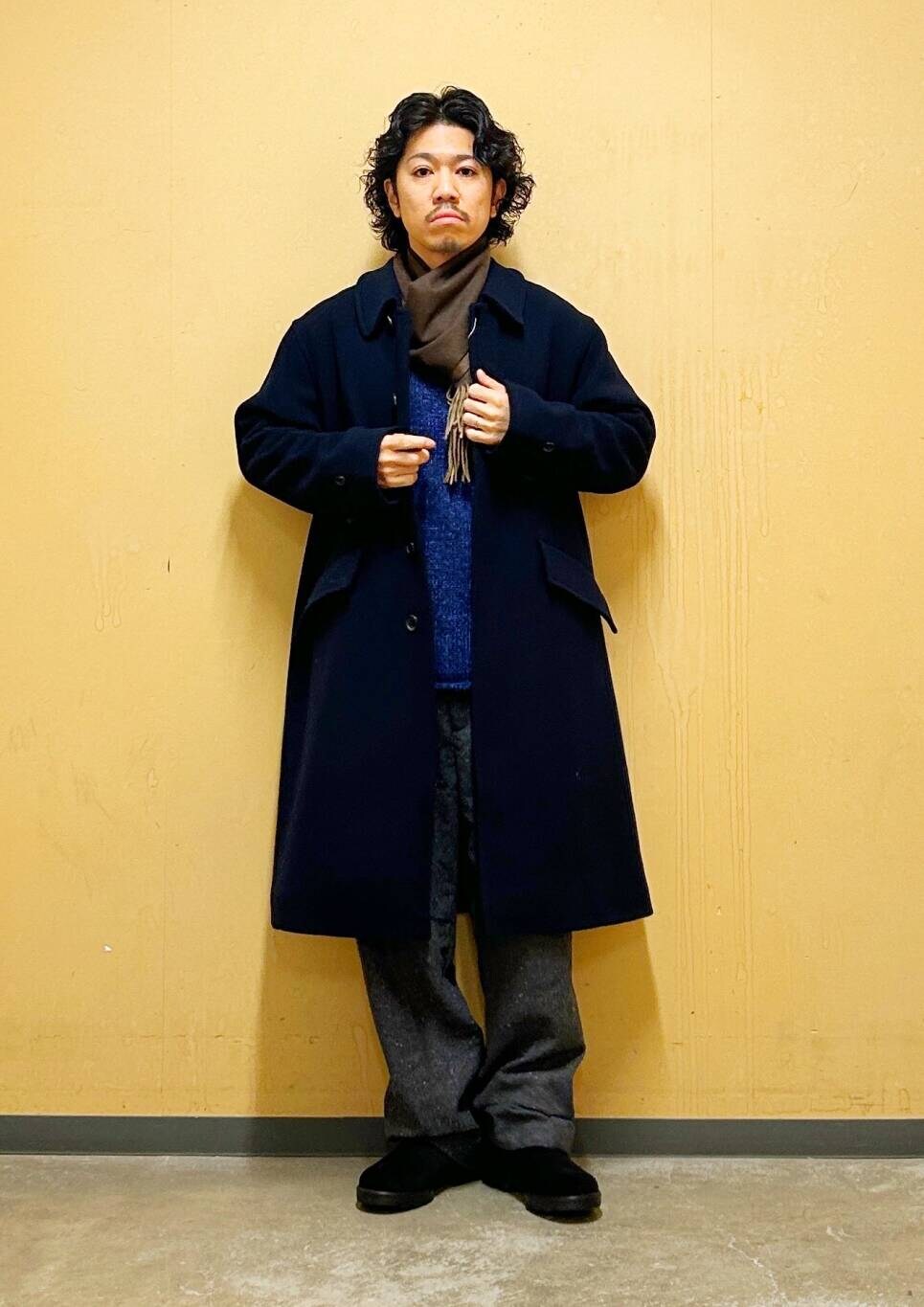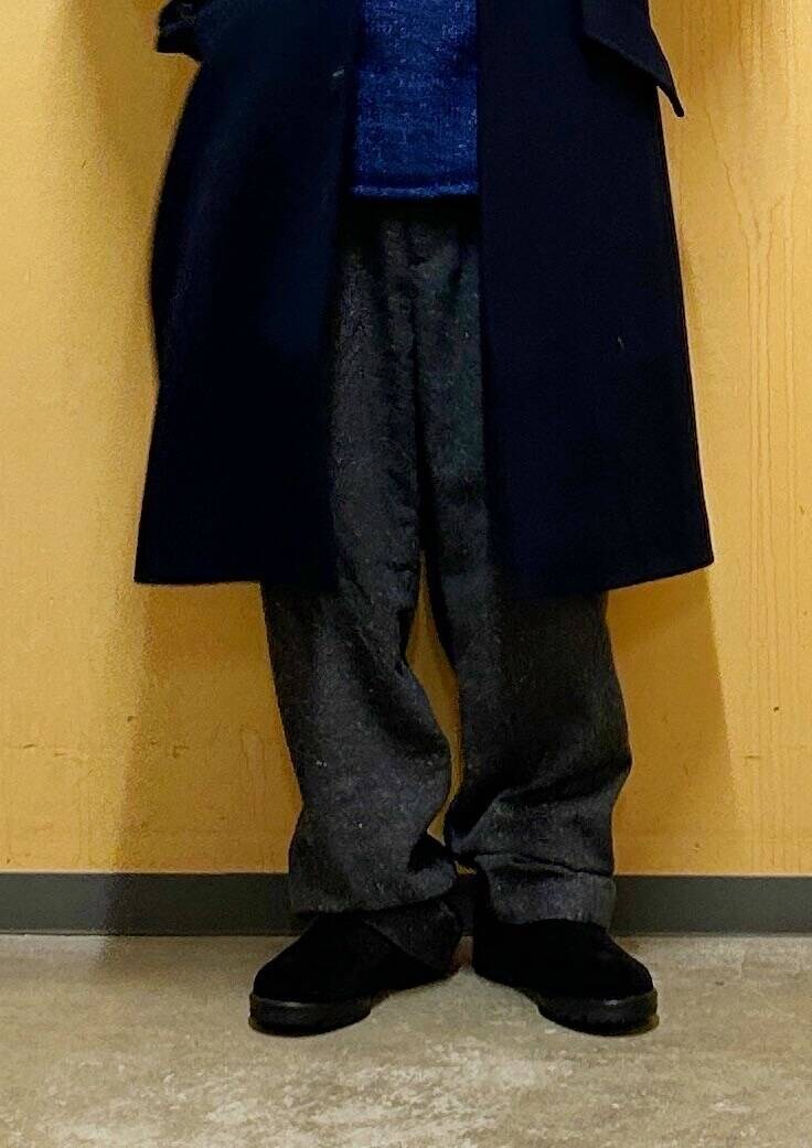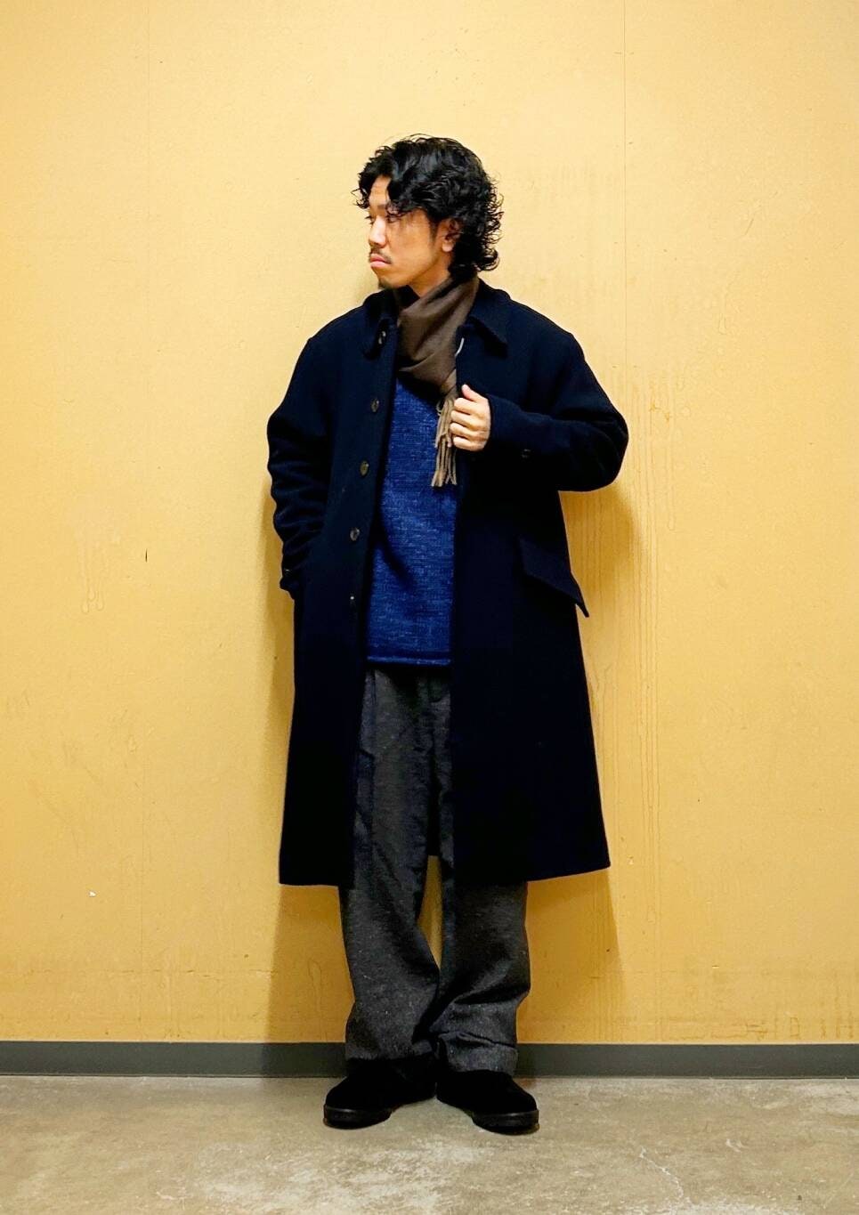 今回はバルカラーコートとネップパンツを使用したコーディネート。