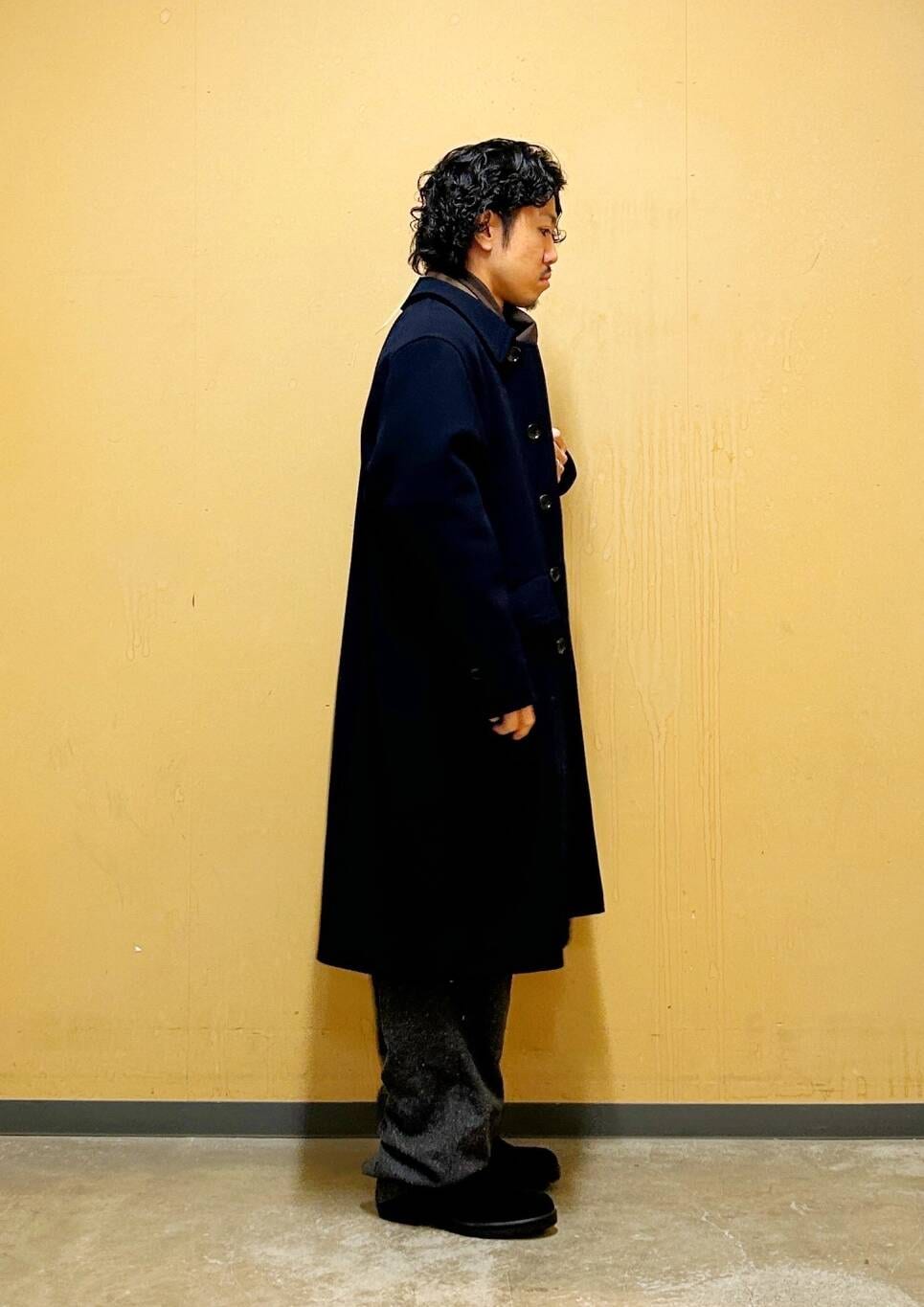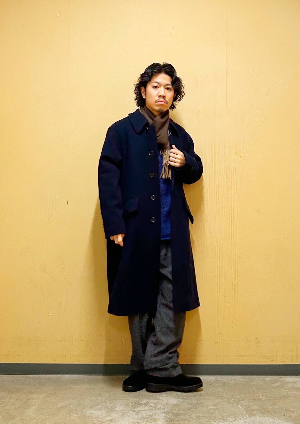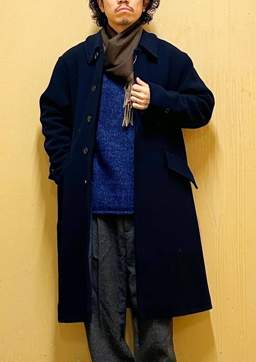 今回はバルカラーコートとネップパンツを使用したコーディネート。