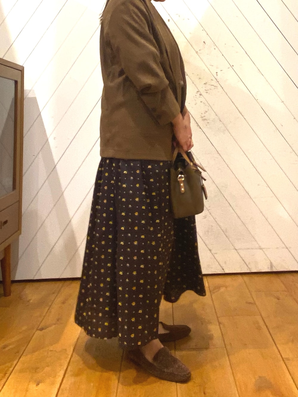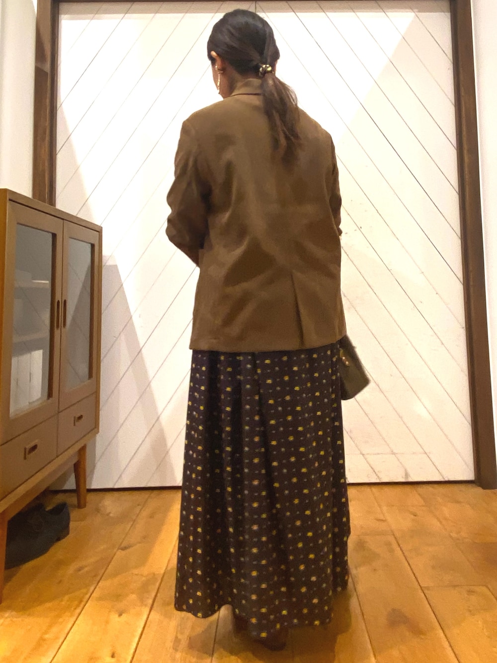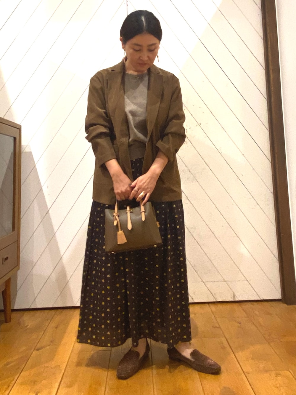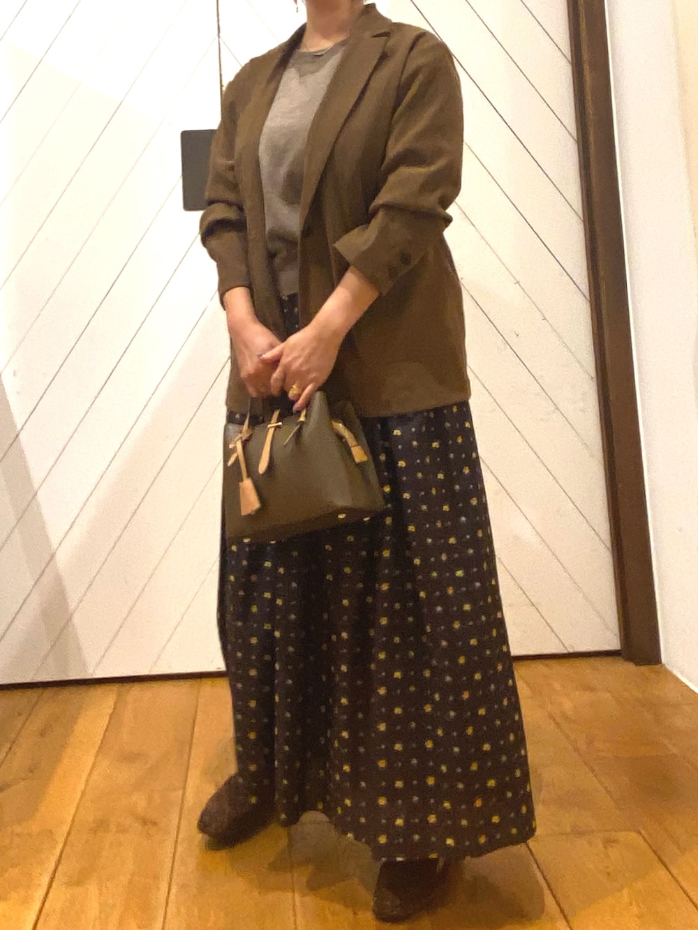 今年流行りのブラウンカラーでまとめました。少しずつ色味の違うブラウンを使って、グラデーションにしたのがコーデのポイントです。
