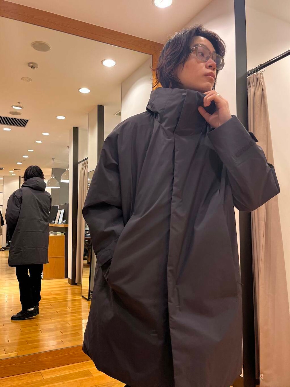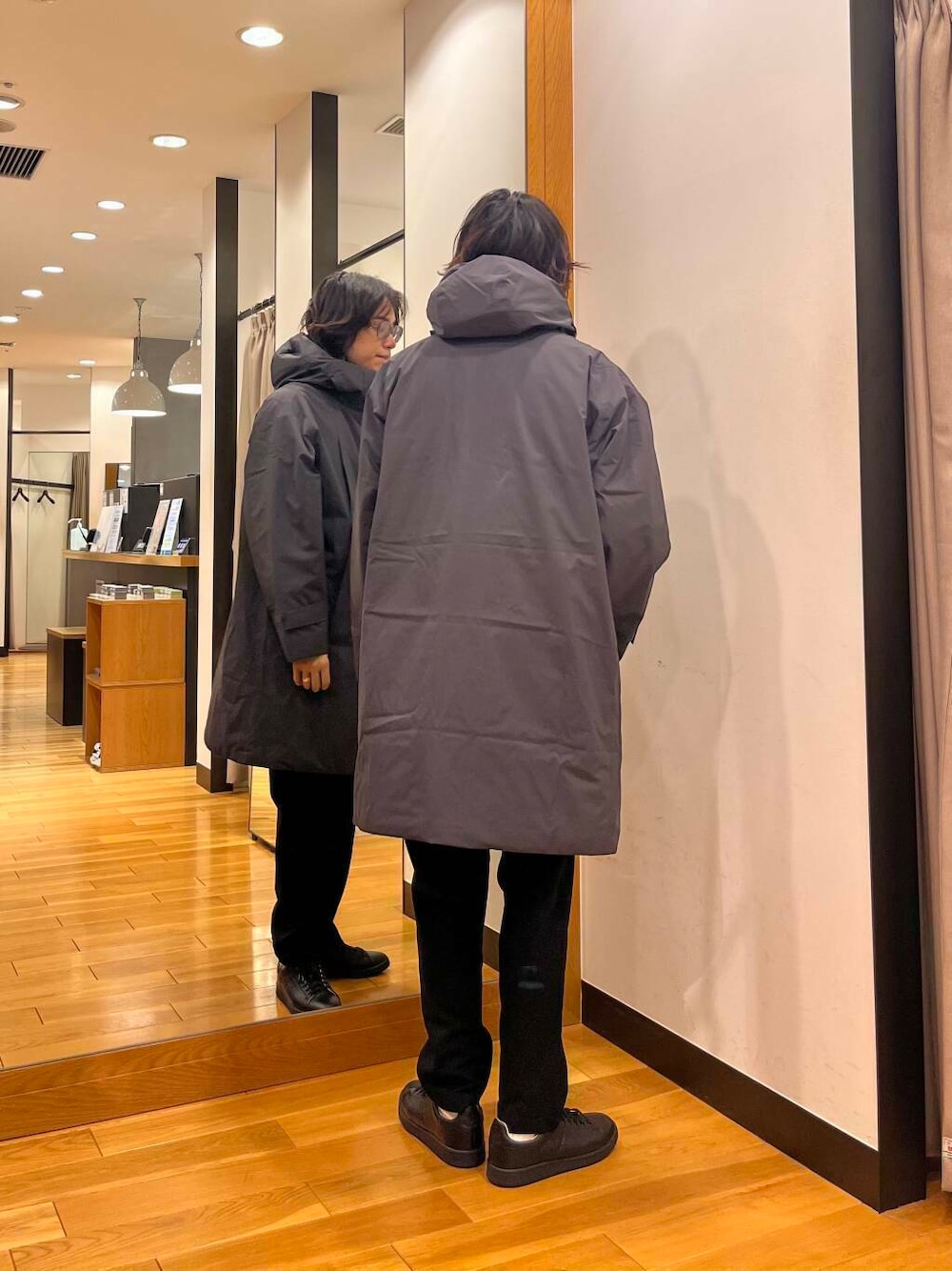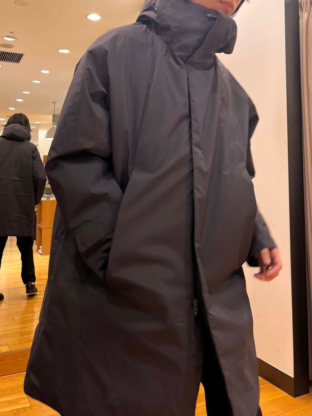 フード付きで足元も隠れるので、暖かが違いますね!!