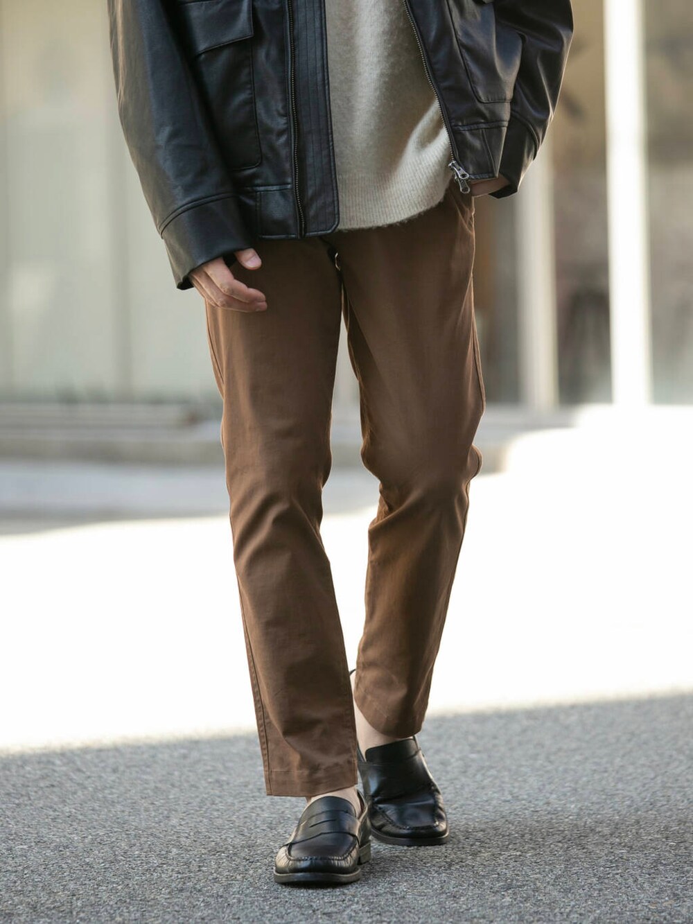 『XLサイズあり』起毛スリムストレッチテーパードチノパンツ