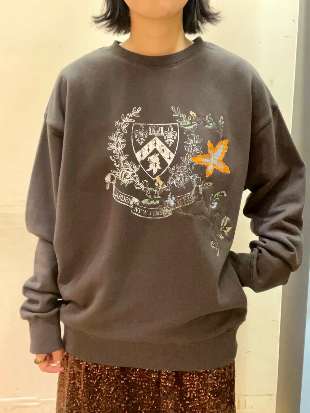 KBFのフラワー刺繍スウェットは、胸のオレンジの刺繍が目を引くポイントです!