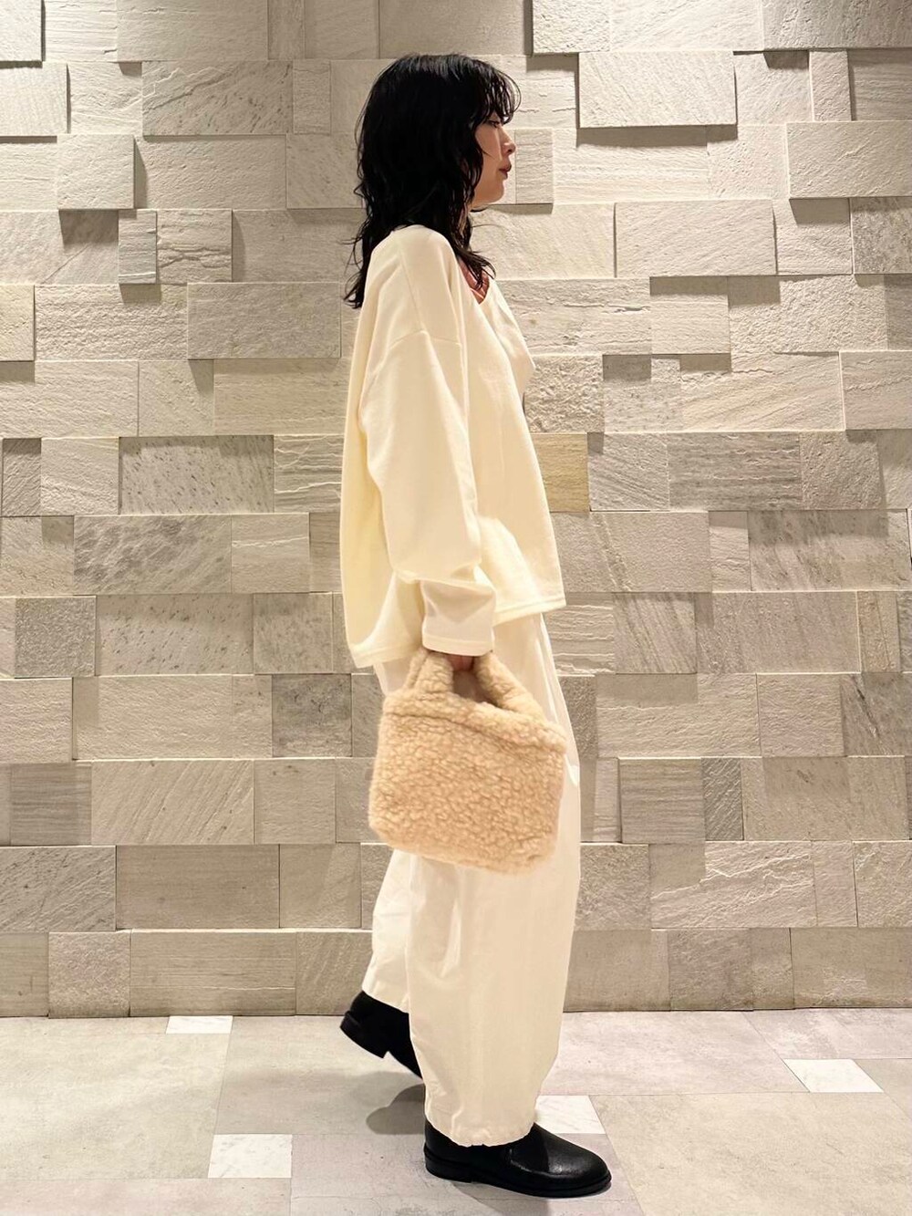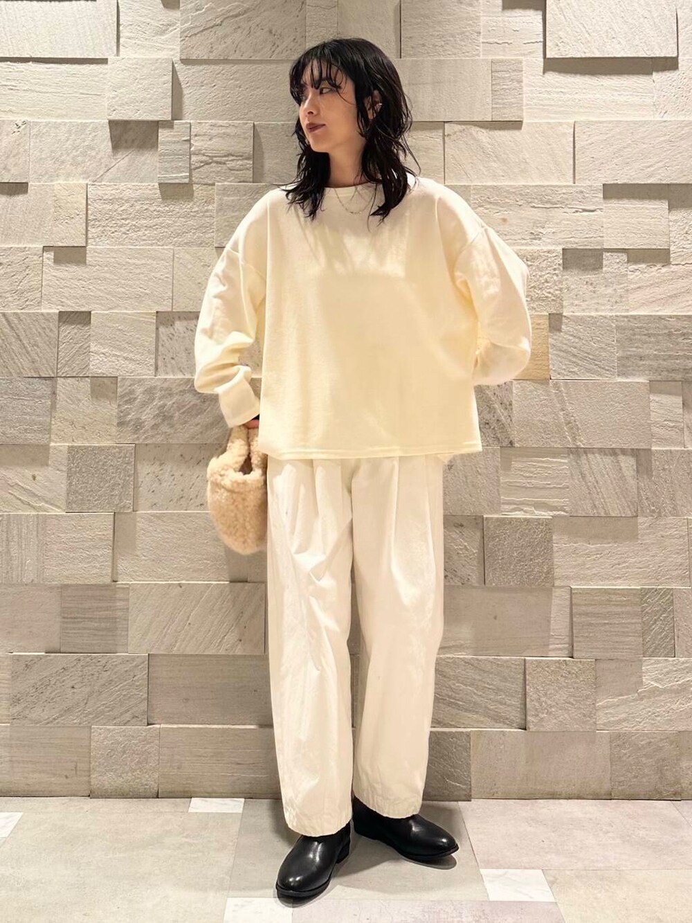 今回はアイテムはクセを出しつつ、色はワントーンでシンプルに。