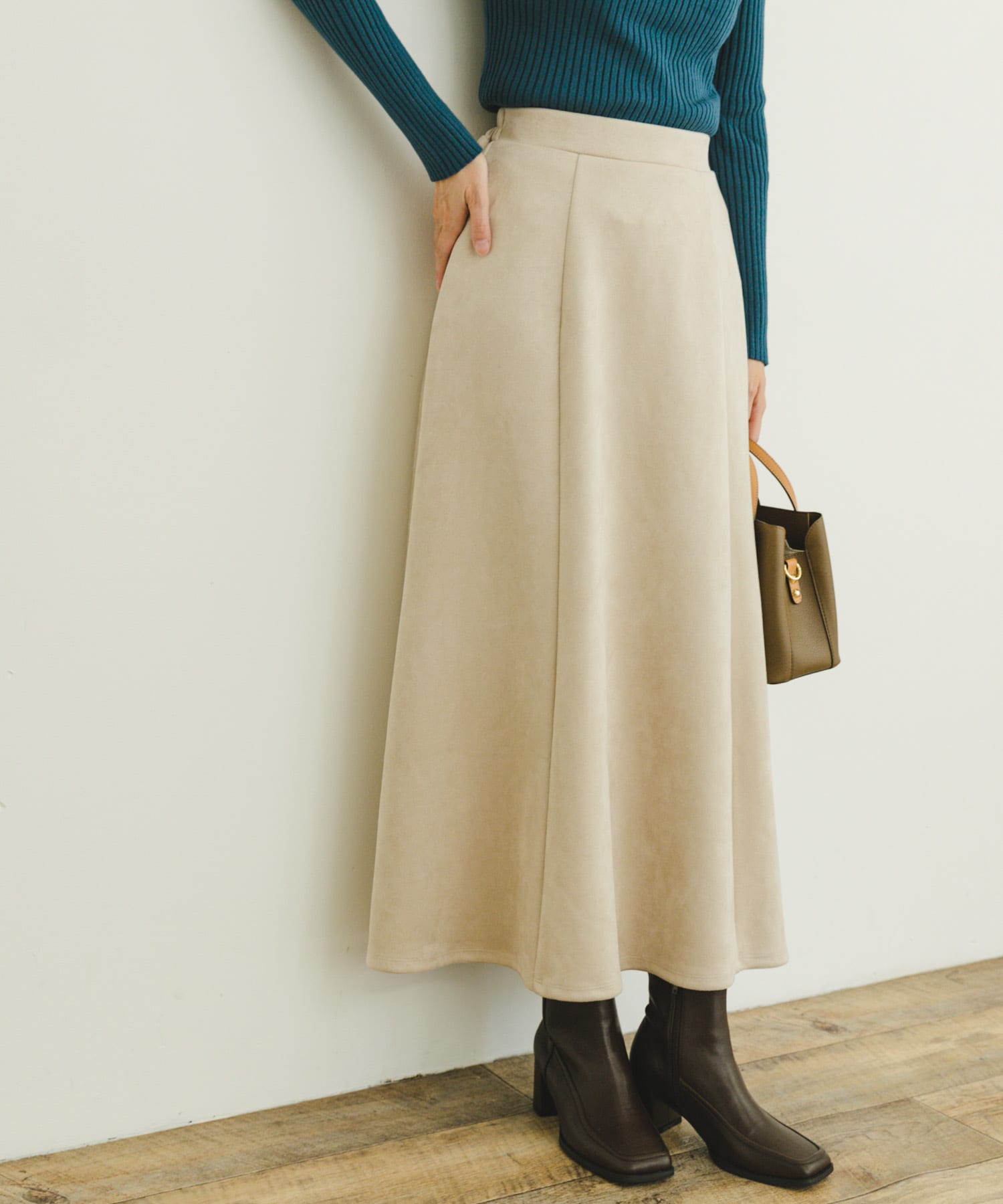 ITEMSフェイクスエードタックフレアスカート- カラー: