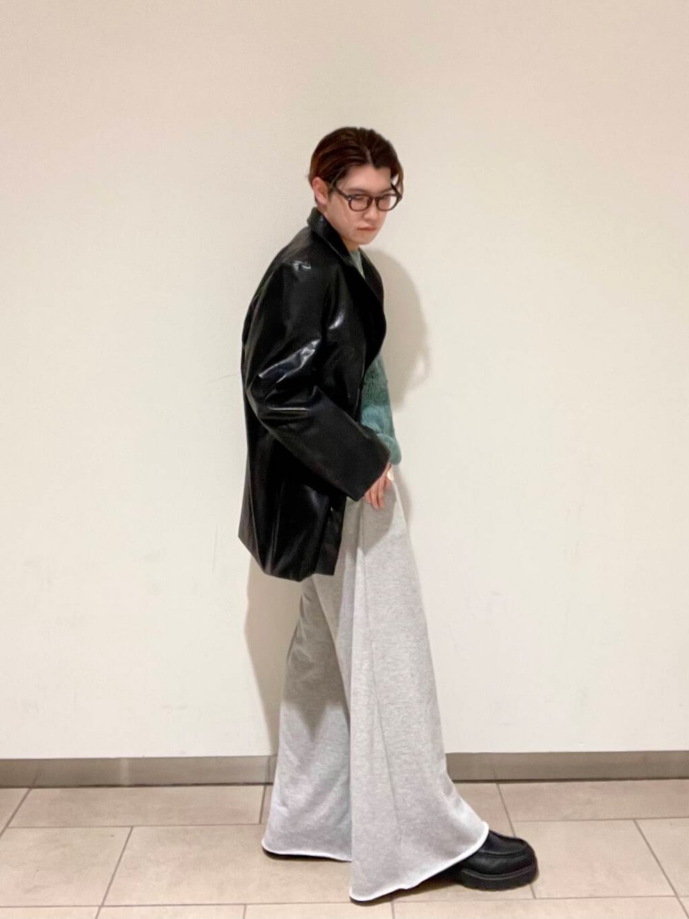 レザージャケットは程よくルーズシルエットで着心地がとても良くインナーにニットやグラフィックTなどを合わせても印象が変わるのでオススメです✨️