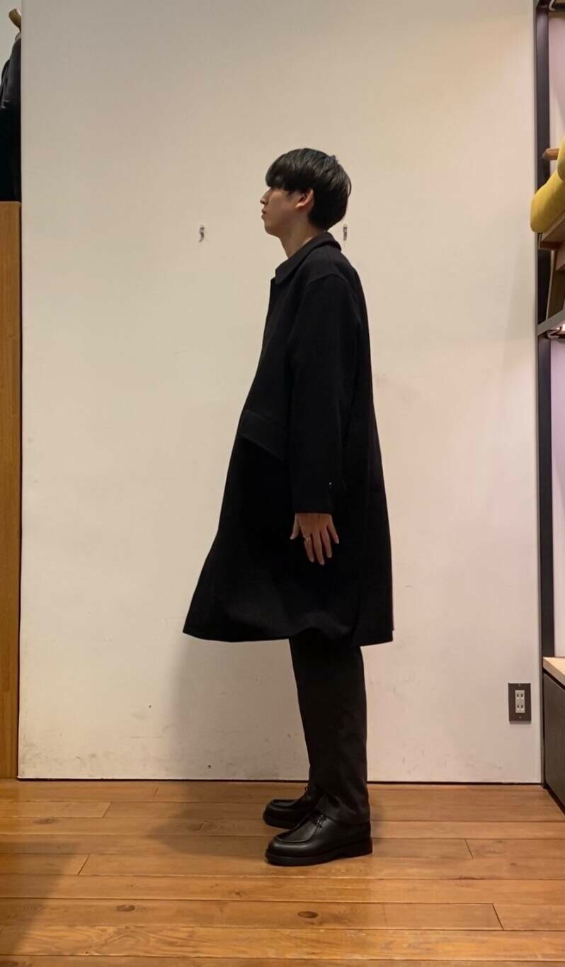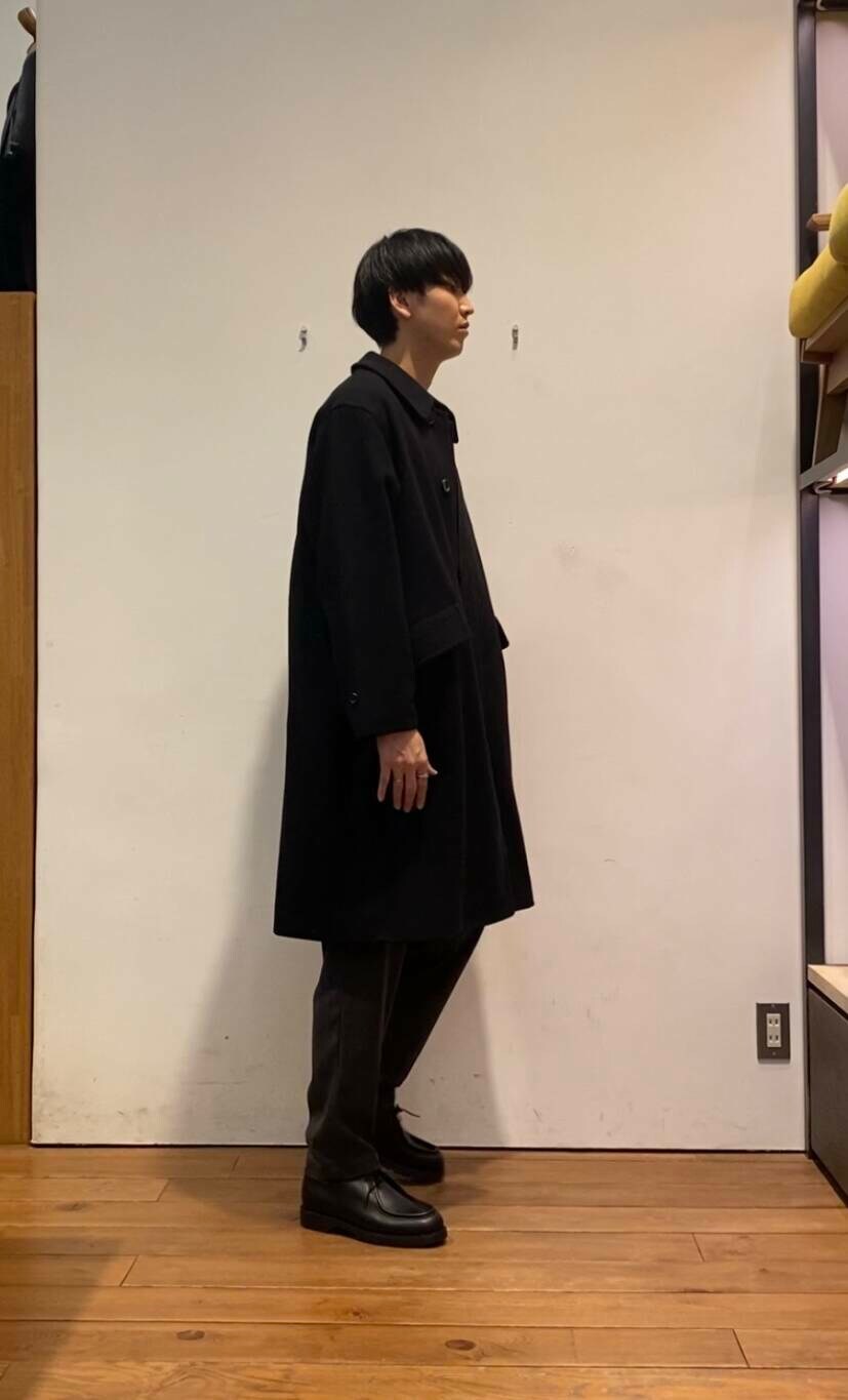 コートは、バストから裾に向かって広がったAラインシルエットとなっております!