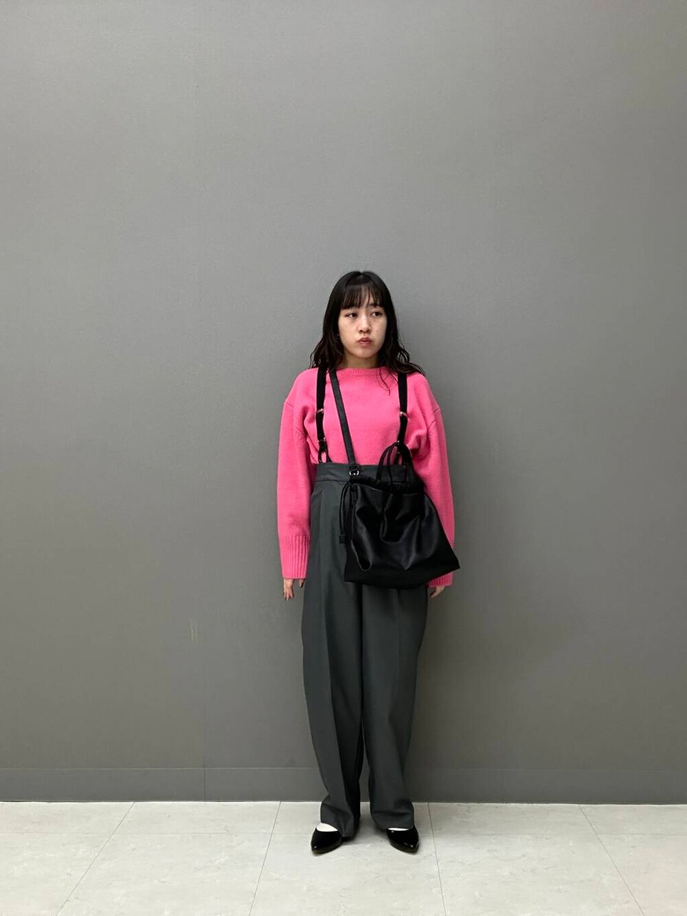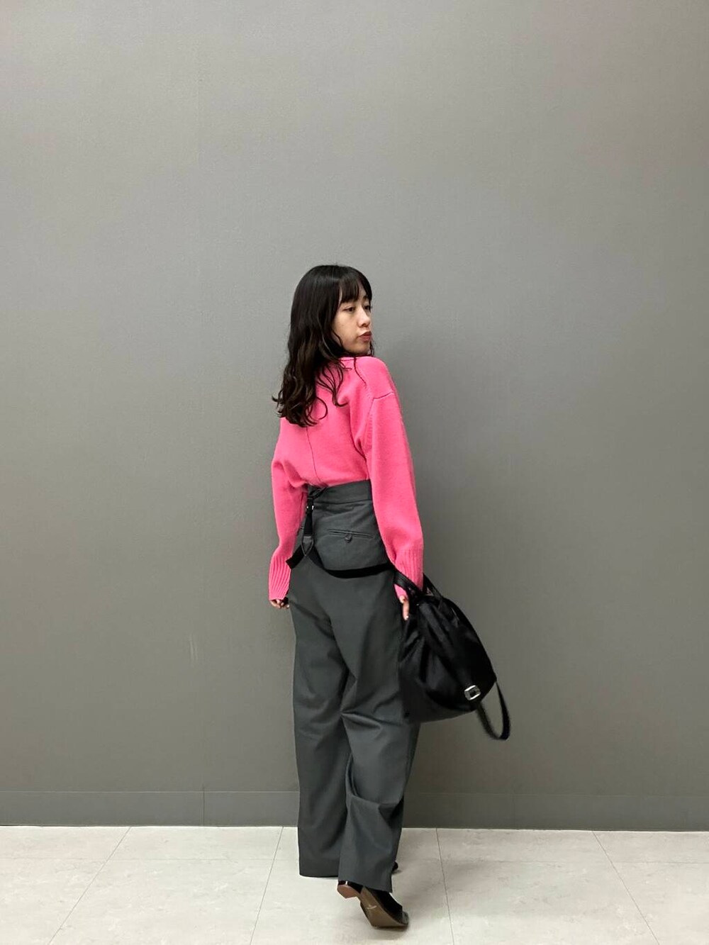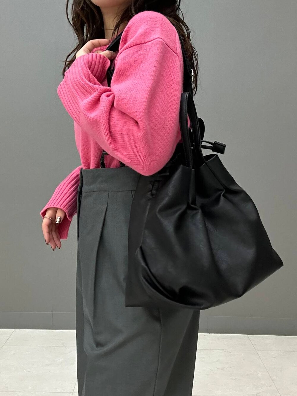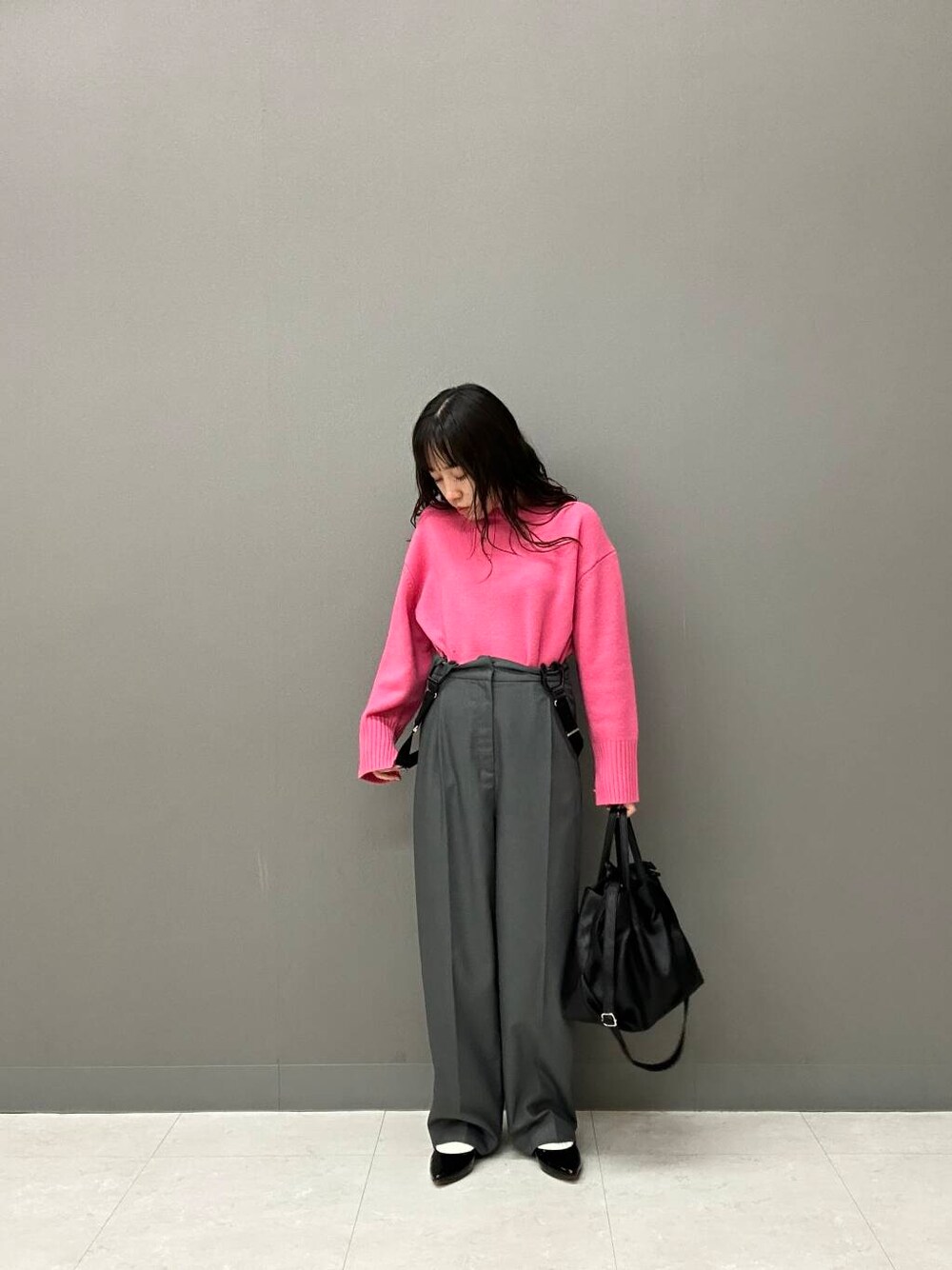 パキッとしたピンクニットを主役に、少し大人っぽく綺麗めパンツとパンプスをチョイスしたコーデです🎀