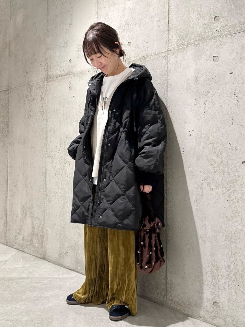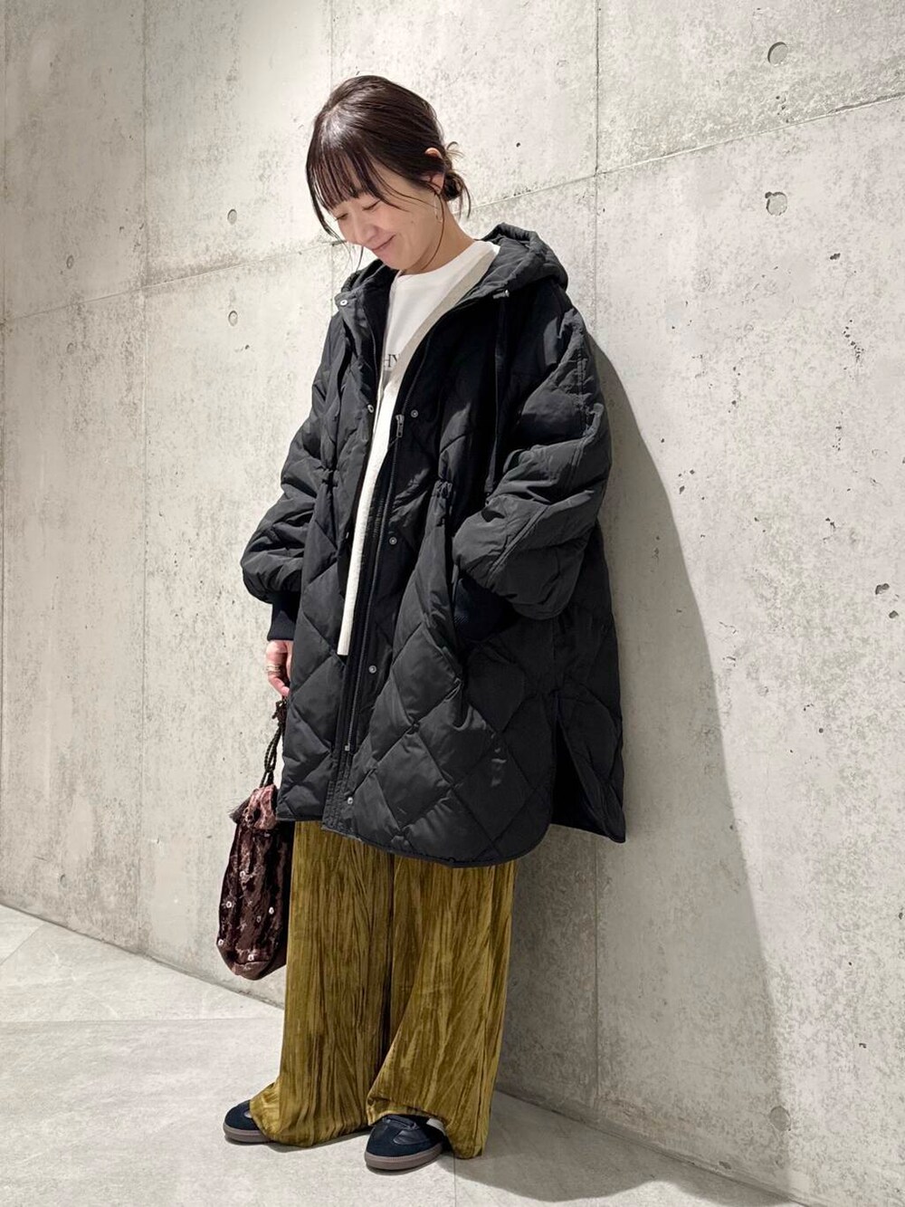 ボリュームのあるアウターなので、スッキリとしたボトムスがおすすめです。