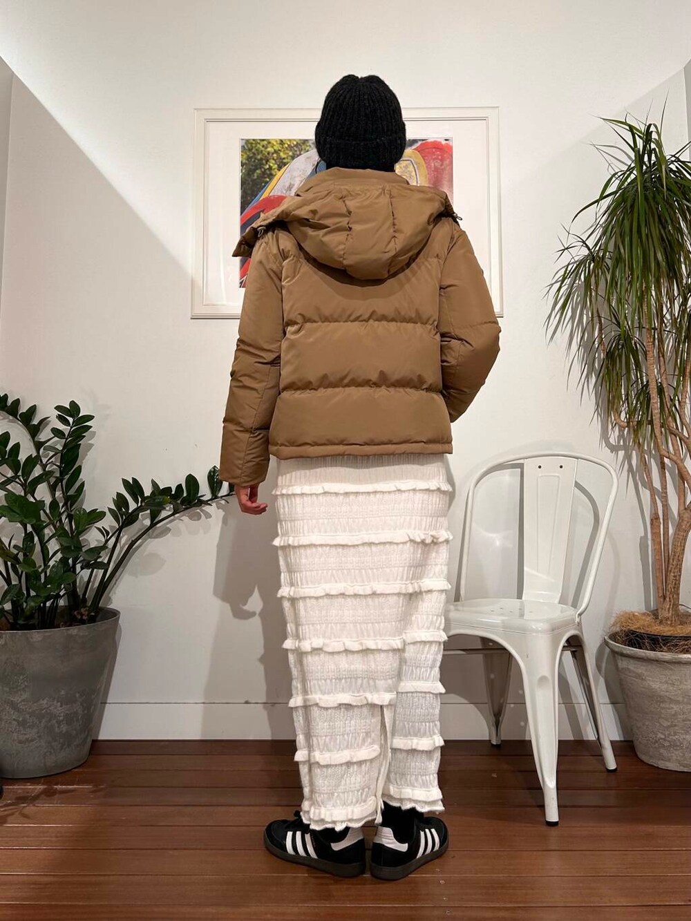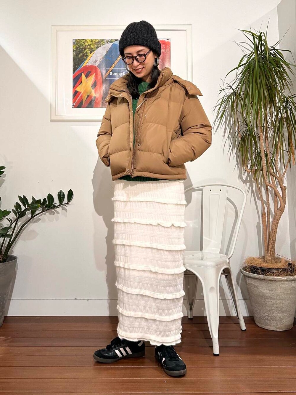 白いフリルのスカートは裏地付きで、白でも透け感はありません。全体的に伸縮性があり幅広い体型の方に着て頂けます。