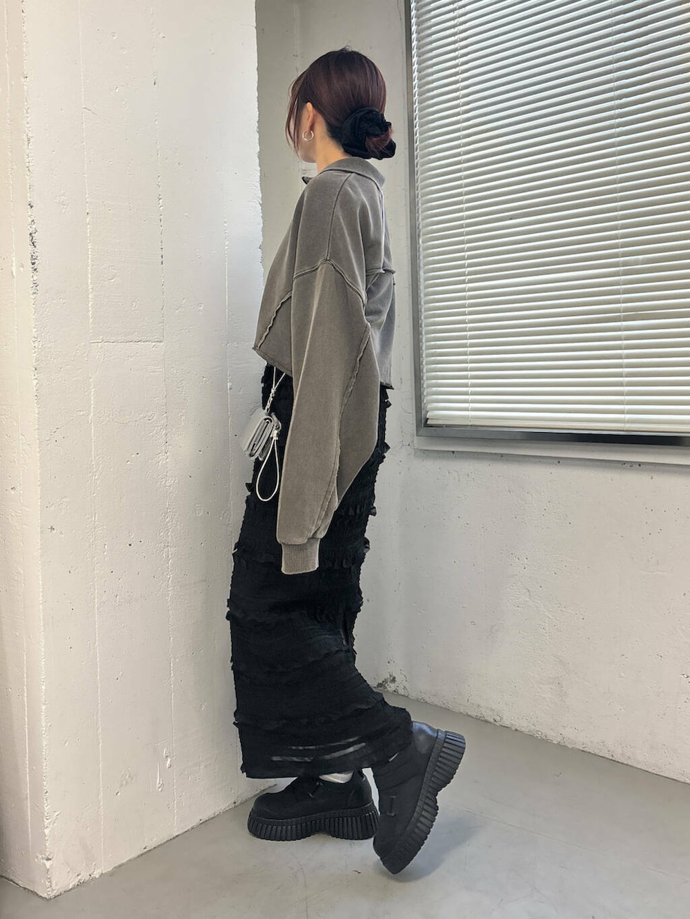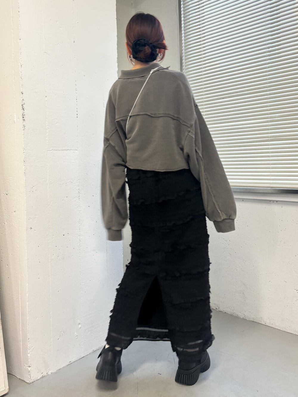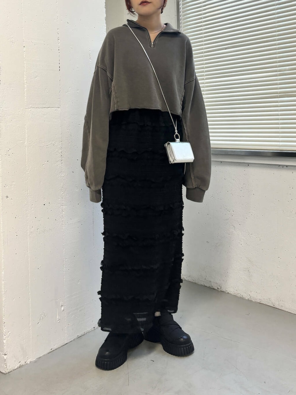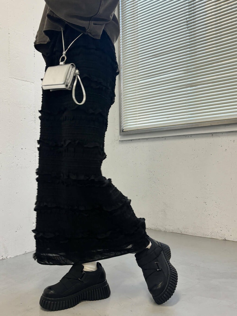 フリフリの着やせスカートと合わせて大人ガーリーコーデに◎