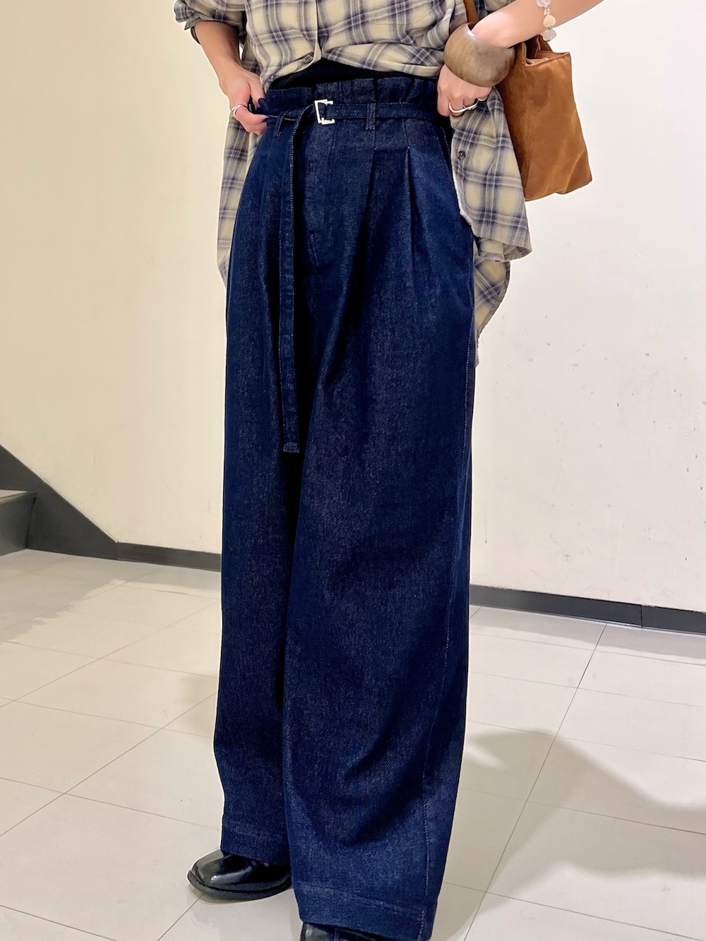 デニムはワンサイズですが付属のベルトで好きな位置まで絞れるので155㎝でも問題なく着用できました!