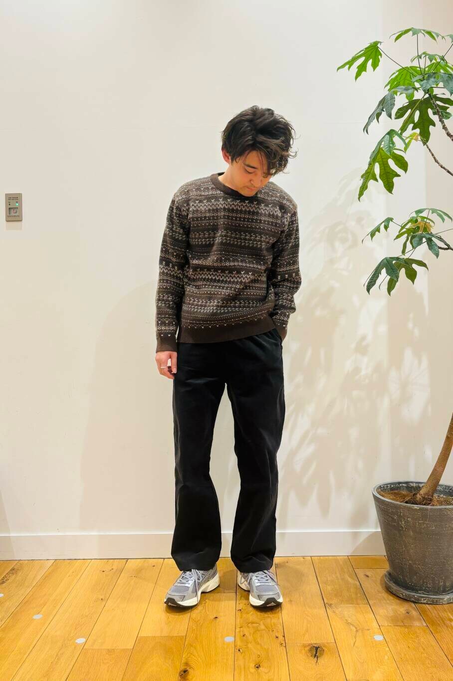 今回は、柄のニットでこれからの冬にオススメのコーディネートを組んでみました。
