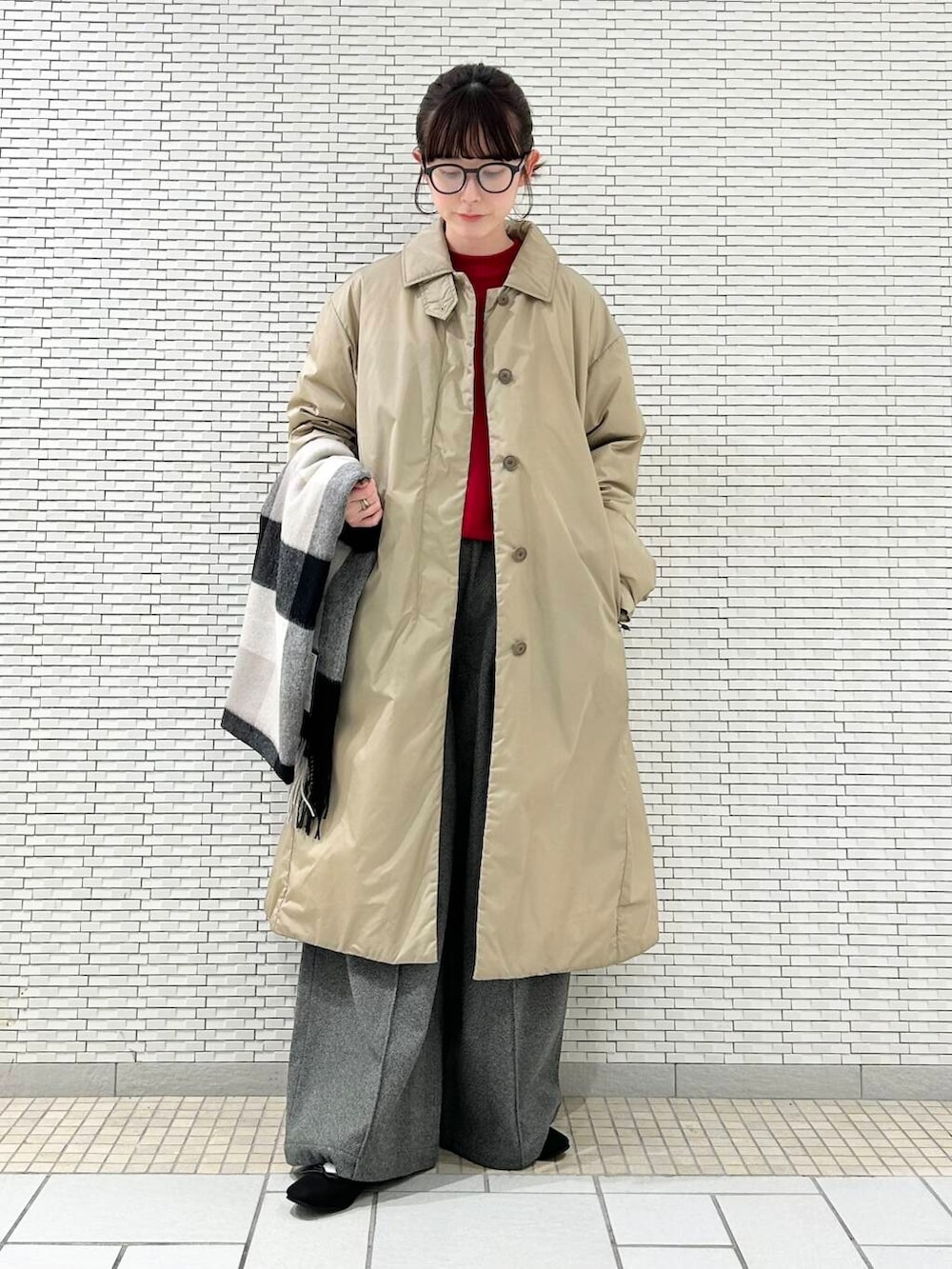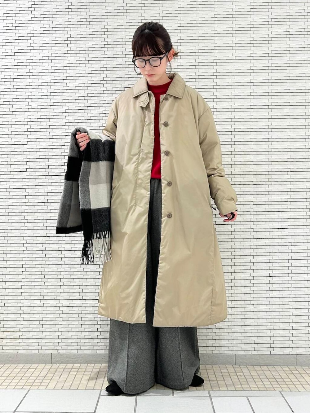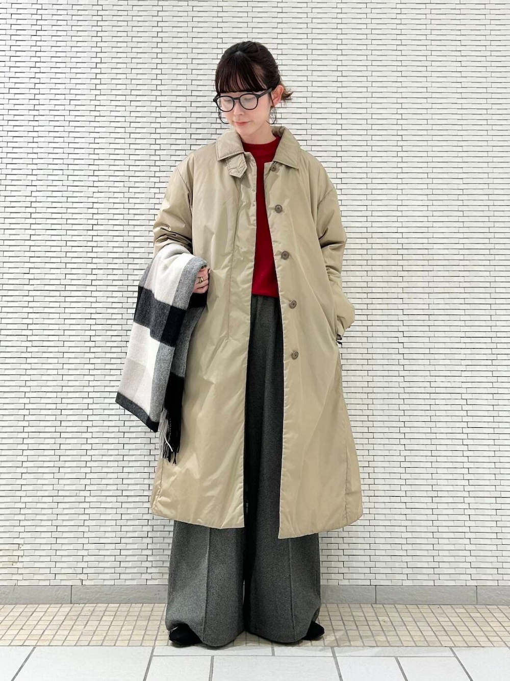 赤を差し色にして冬らしいスタイルにしました♪