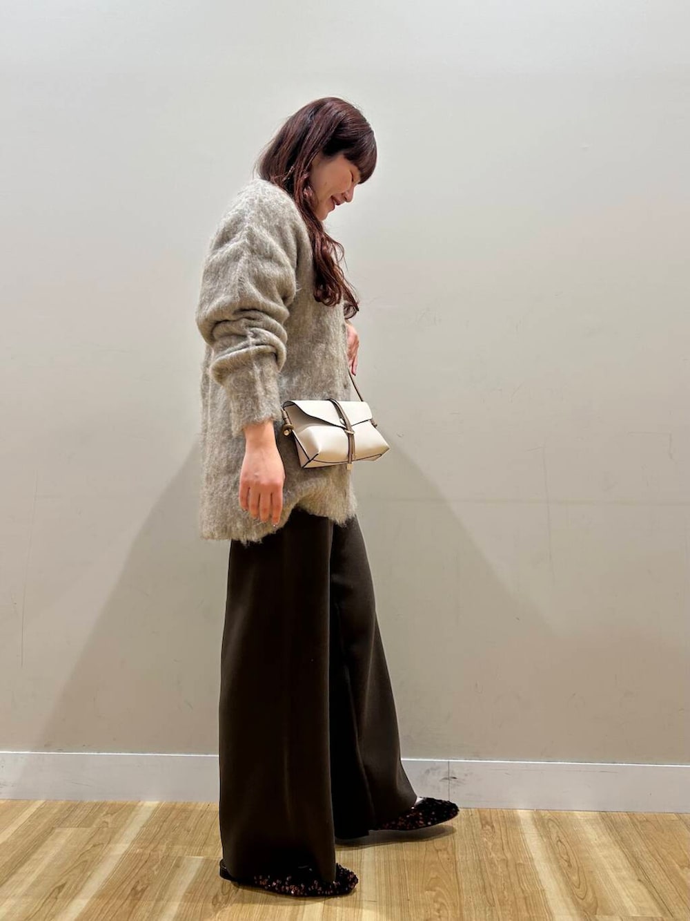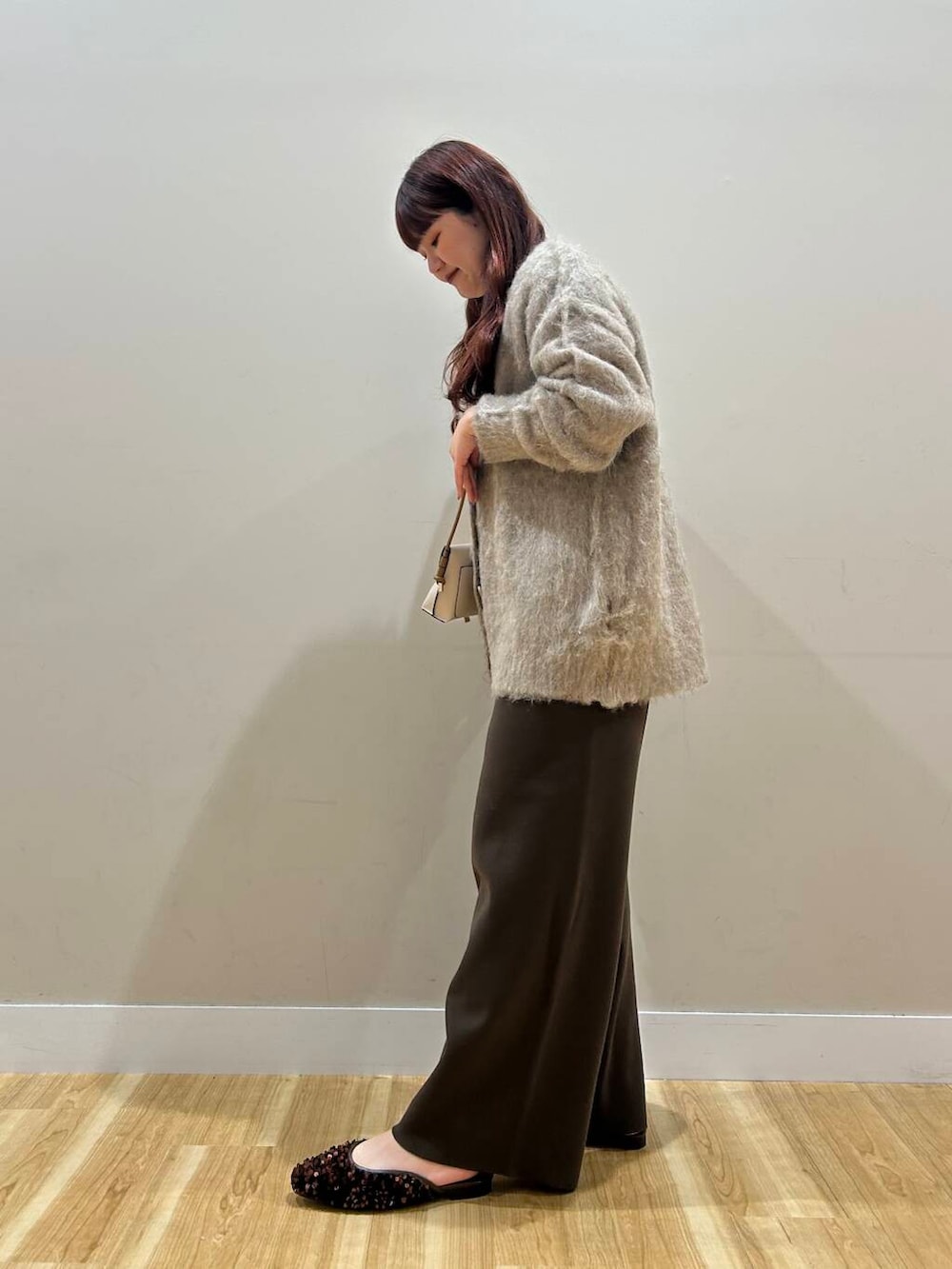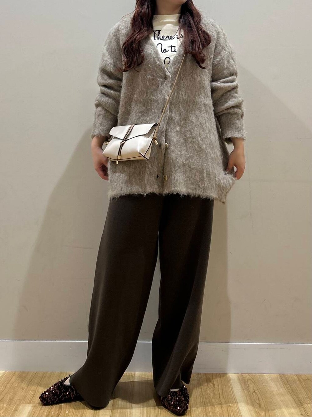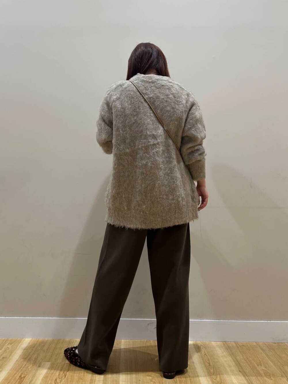 シャギーのニットガーデはお尻まで隠れる丈感で体型カバーバッチリでした🫶🏼🫶🏼