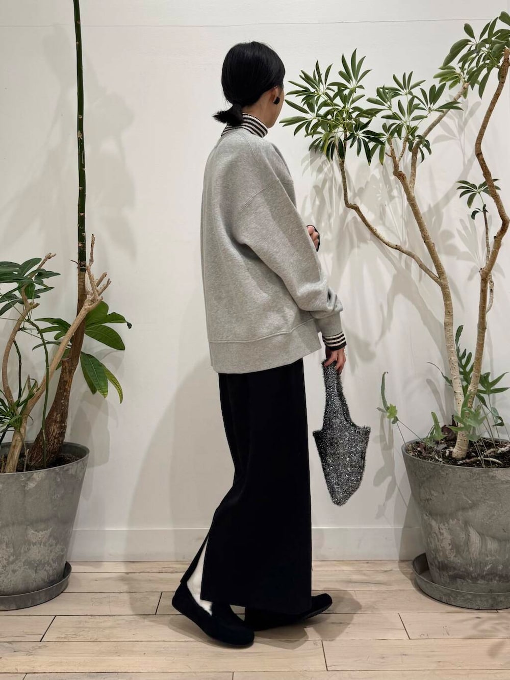 スウェットは左側がスナップボタンになっていて開けれるので、インナーのボーダーを見えるように着てみました^ ^
