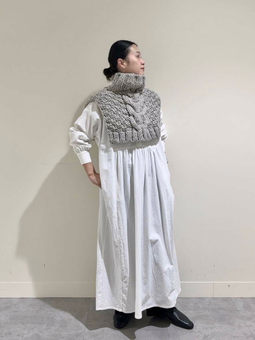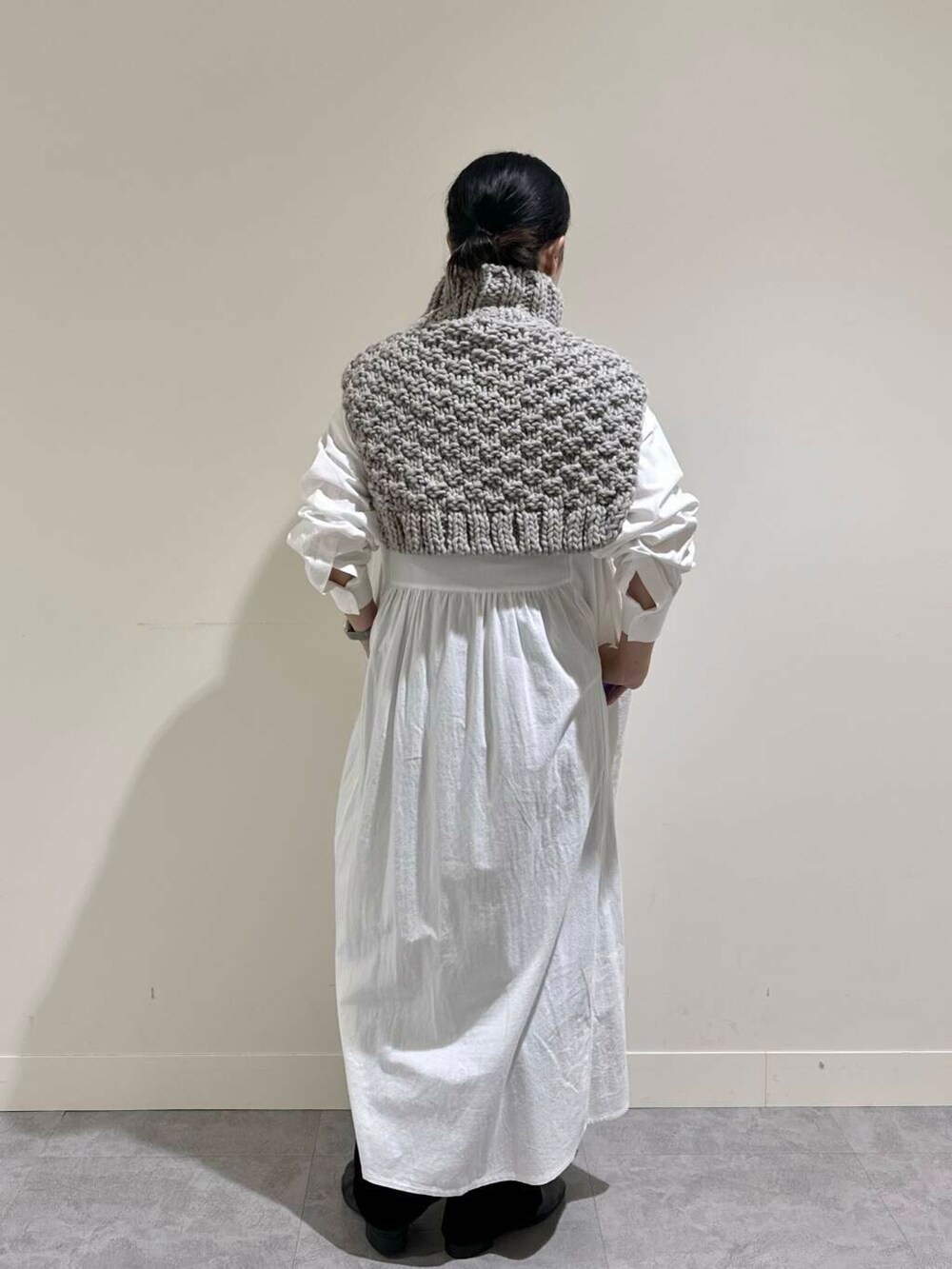スタイリングは、人気のペルーショルダーニットウォーマー。