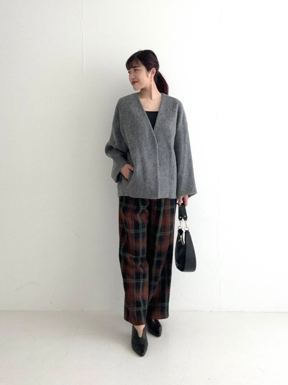 ノーカラー仕様がマニッシュさのある雰囲気をプラス。