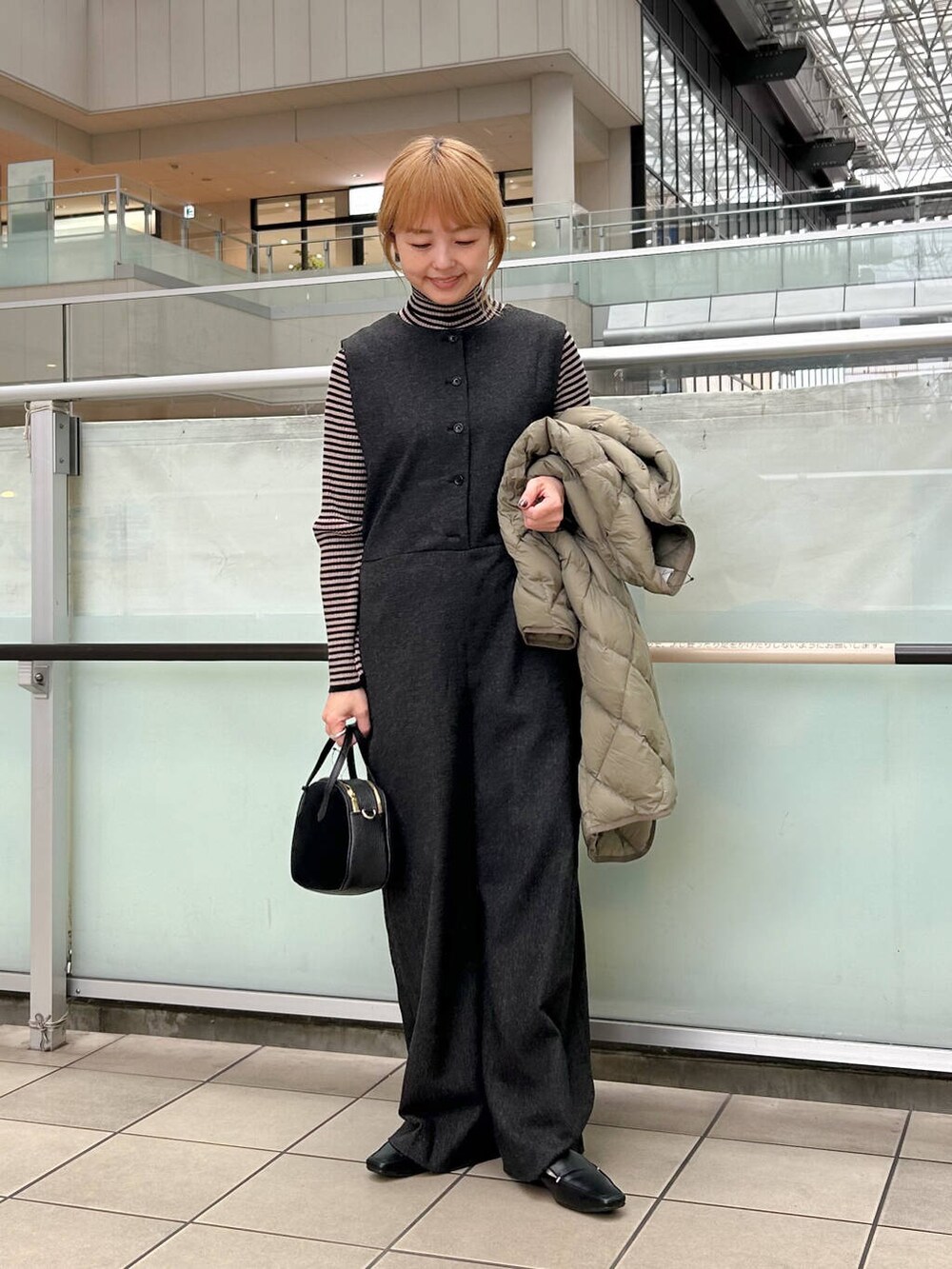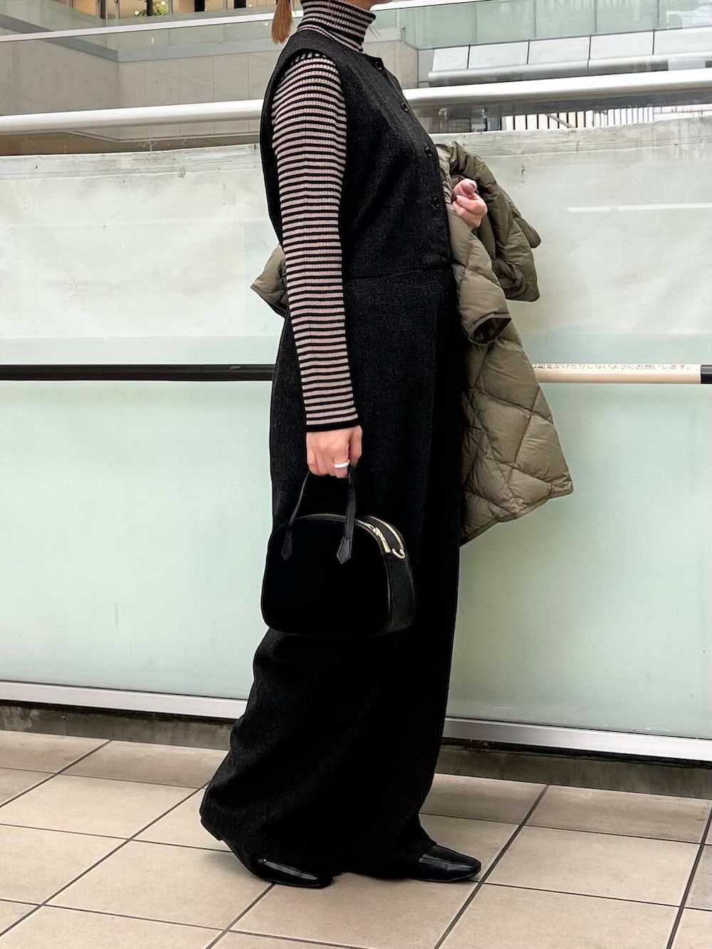タートルネックは毎年人気のボーダーリブタートルを合わせました。