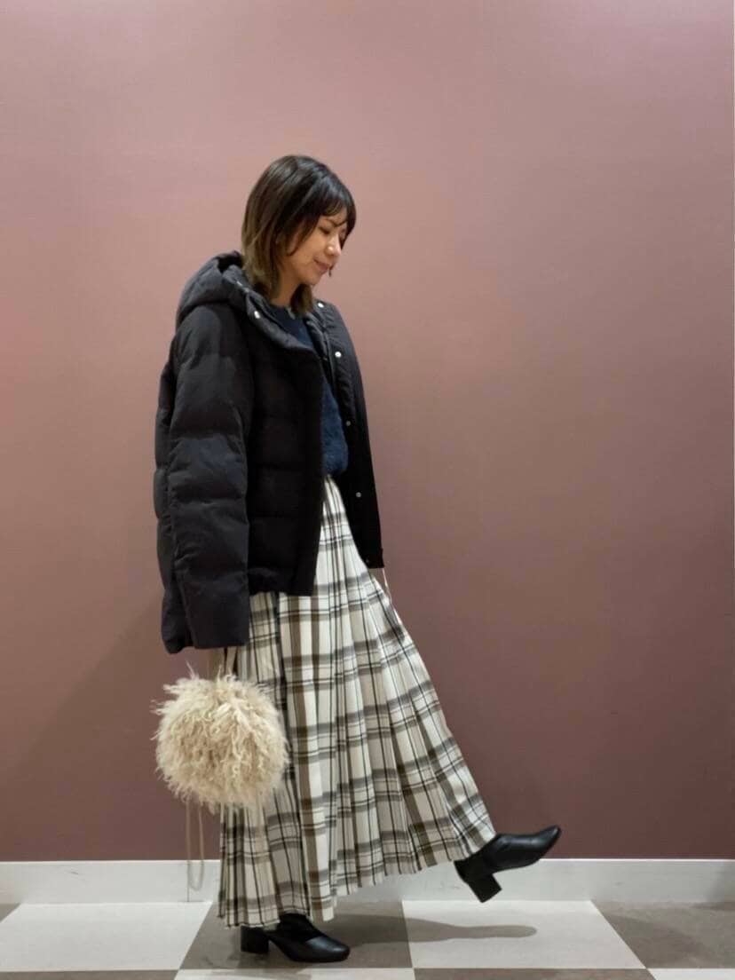 ダウンジャケットは後ろが長めの丈なのでお尻まで暖かく軽いので普段使いしやすいアイテム✨