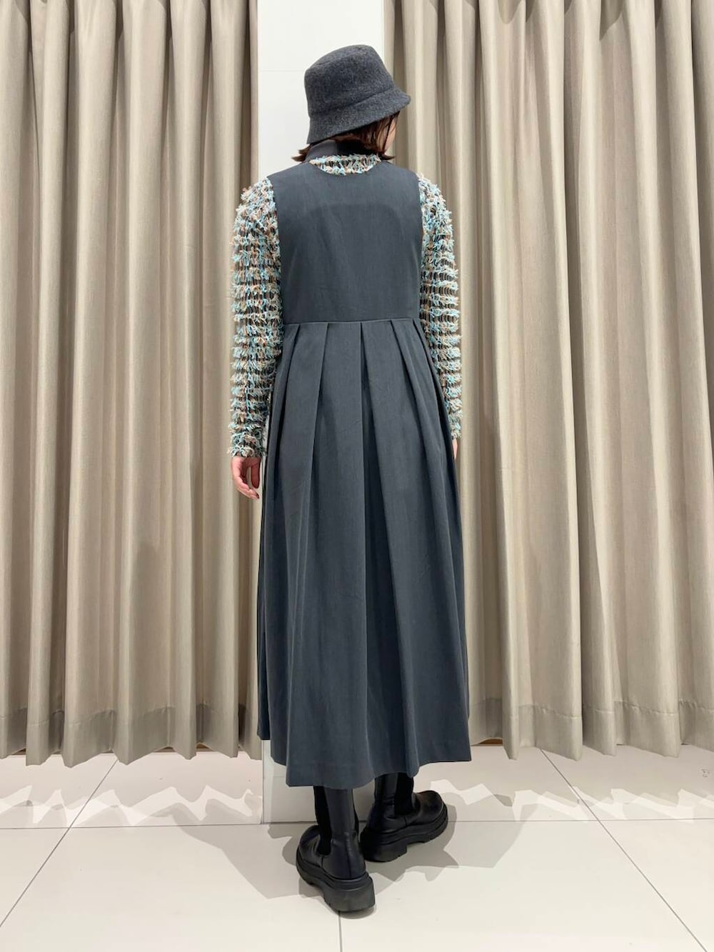 私はCHARCOALが推しカラーなので、同じKBFのフリンジニットと合わせて寒色コーデで組みました⸜ ෆ ⸝