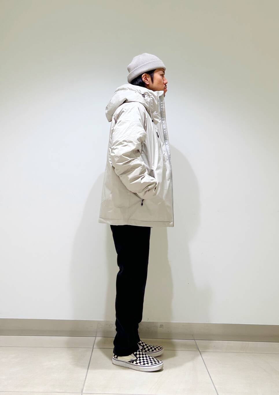 ・顔周りの露出面積を減らし冷気を防げるスピンドルをあしらったフード