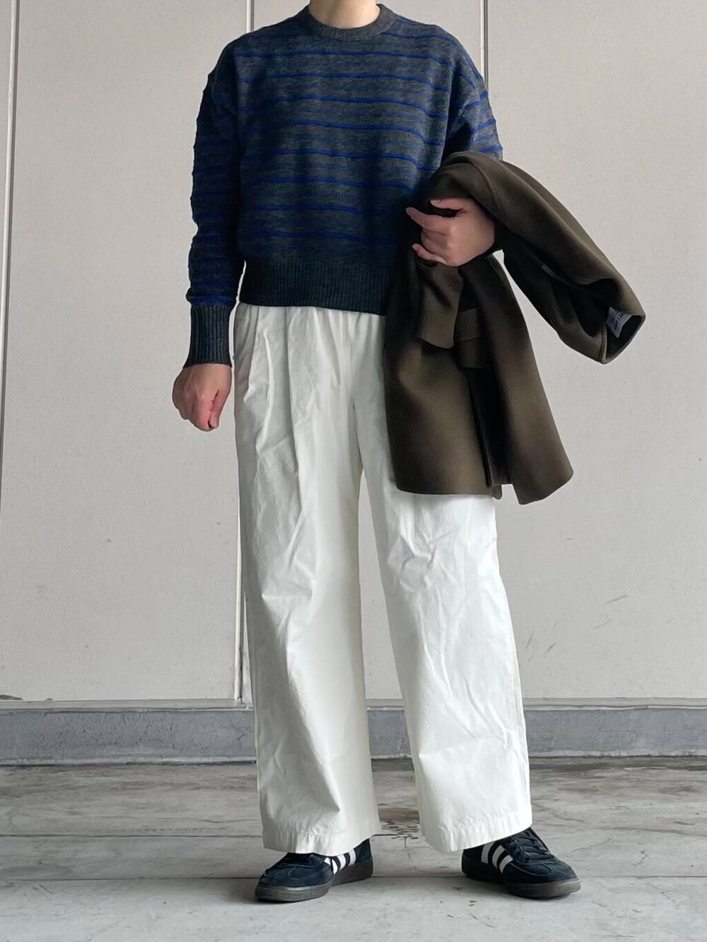 今回は軽くて着やすいボーダーのニットあわせてカジュアルなスタイリングで。