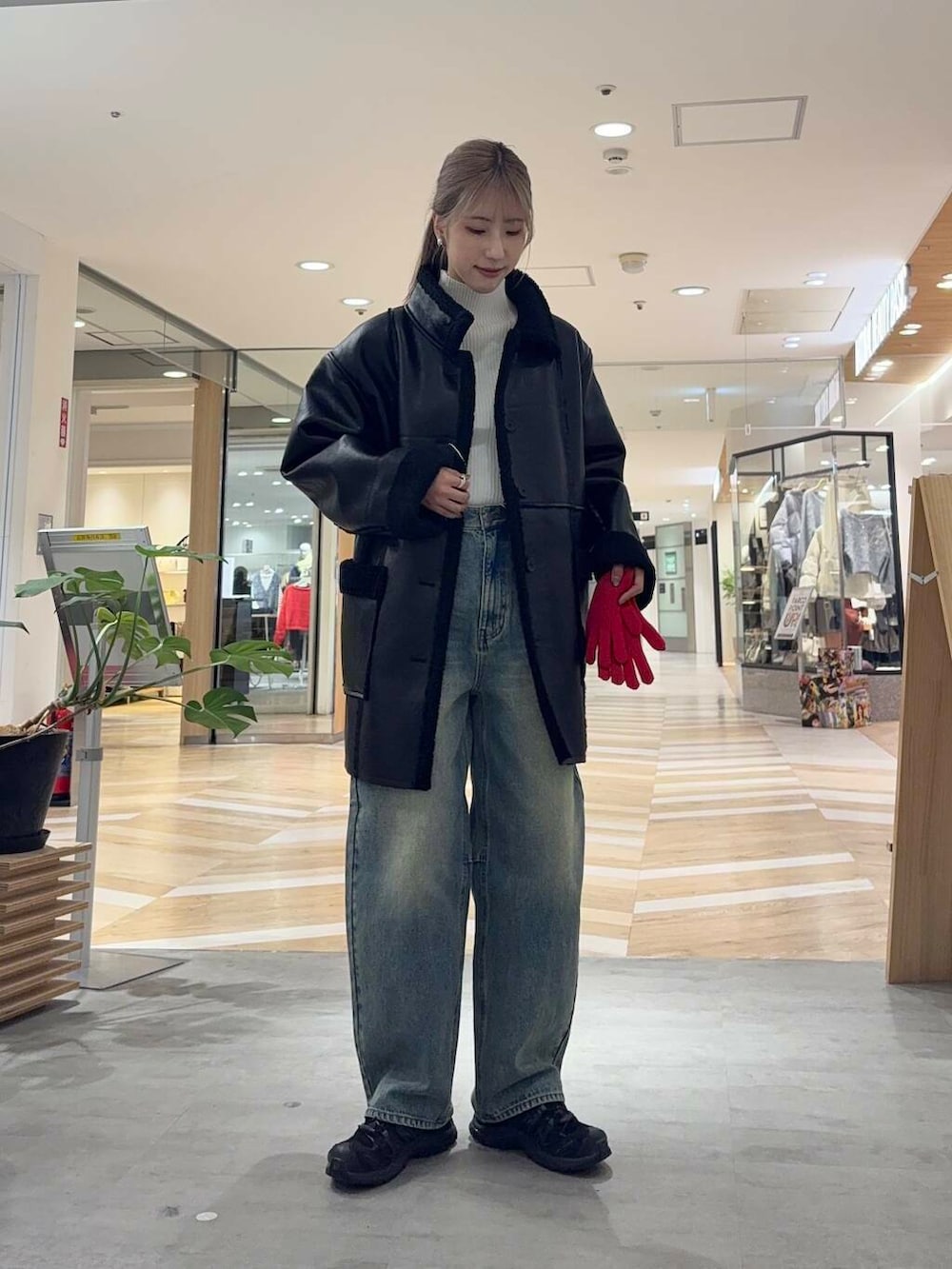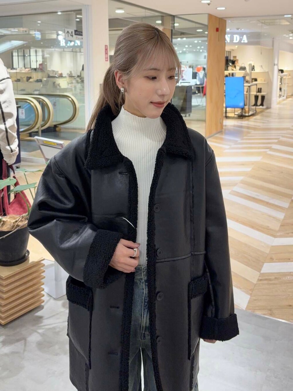 ジャケットはどちらも黒のお色なのですが、レザーはカッコよく、ボアはカジュアルな印象になるのでぜひ試してみて下さいね♪