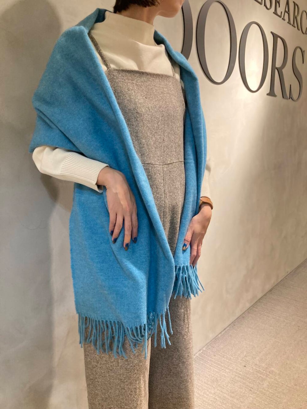 寒くなったのでカラー映えの大判ストールをプラスしました♪