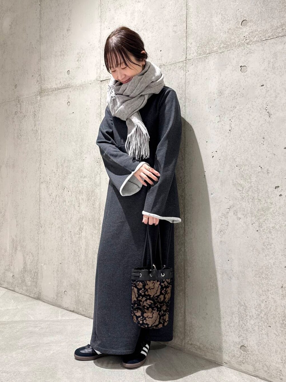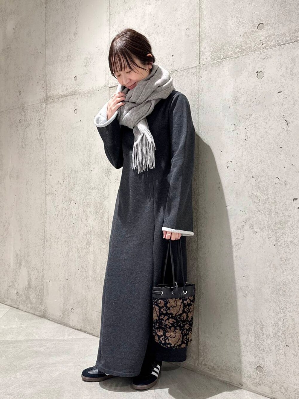 シンプルなデザインなので、マフラーなどの小物でアレンジするのがおすすめスタイルです。