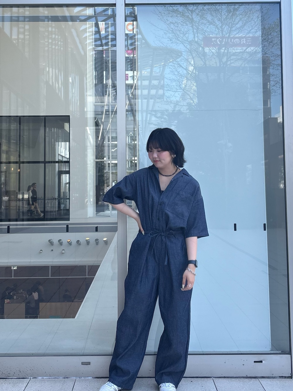 基本無地が多いですが、チェックシャツを着てみました。